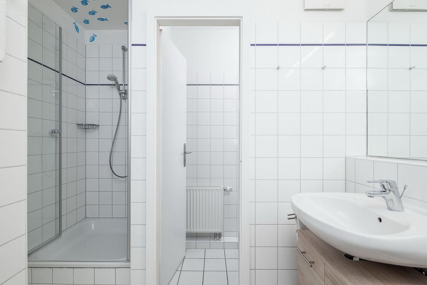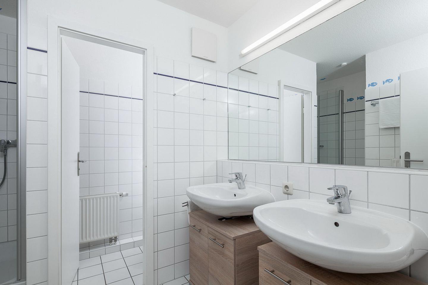 Im geräumigen Duschbad mit zwei Waschbecken gibt es ein separates WC. In dieser Nichtraucherwohnung sind Haustiere nicht erlaubt. Den Gästen stehen im Keller des Hauses zwei Fahrräder (ohne Gewähr), eines davon mit Kindersitz und ein Kinderfahrrad (18 Zoll) zur Verfügung. Zusätzlich gibt es für die kleinen Gäste neben einem Kinderstuhl, ein strandtauglicher Kinderjogger, ein Bobby-Car, ein Spielbagger und Strandschaufeln.