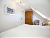 Das Schlafzimmer im 1. OG ist mit zwei Einzelbetten (2 x 90 x 200 cm) und einem Kleiderschrank ausgestattet. Beide Schlafzimmer im Dachgeschoss sind mit jeweils einem Doppelbett (2 x 90 x 200 cm und 2 x 80 x 200 cm) sowie einem Kleiderschrank eingerichtet. Zur Verdunkelung befinden sich Vorhänge bzw. Rollos an den Fenstern. Ein Kinderreisebett gehört zur Ausstattung der Wohnung.