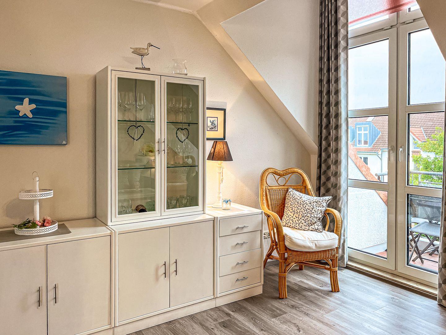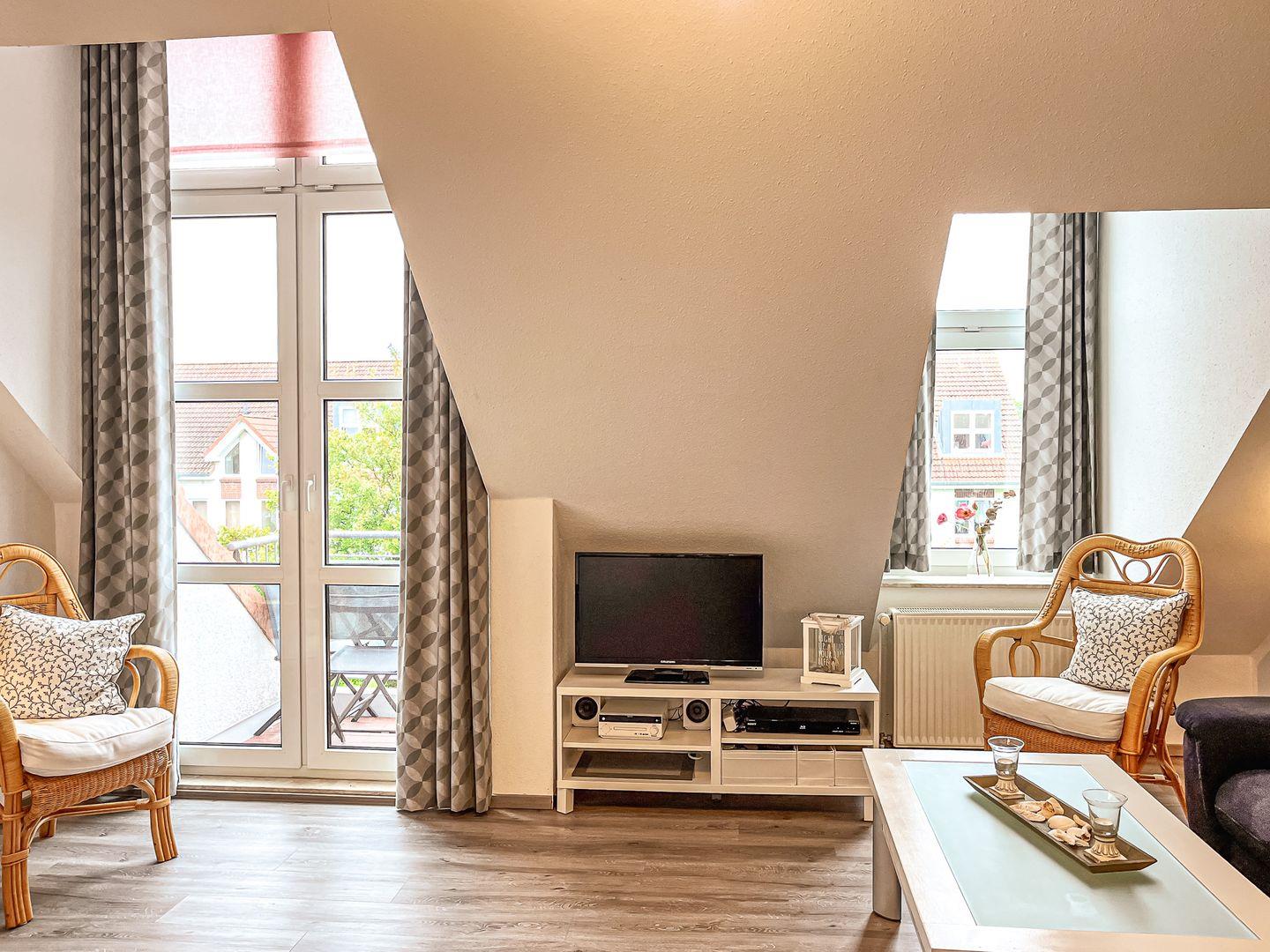 Die 3 Zimmerwohnung Nr. 68 (DG) der Ferienwohnanlage Sünnslag verfügt über 1 Wohnzimmer mit Küchenzeile sowie 2 separate Schlafräume mit max. 4 Schlafplätzen. Der Balkon liegt in Richtung Südost. WLAN (ohne Gewähr) inklusive.
