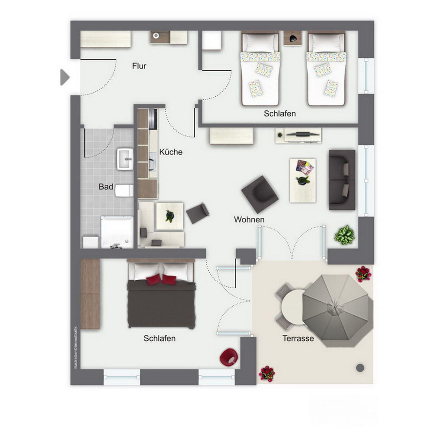 Die Ferienwohnung Nr. 40 in der Ferienanlage Dünenblick ist eine 3-Zimmer-Wohnung für 4 Personen.