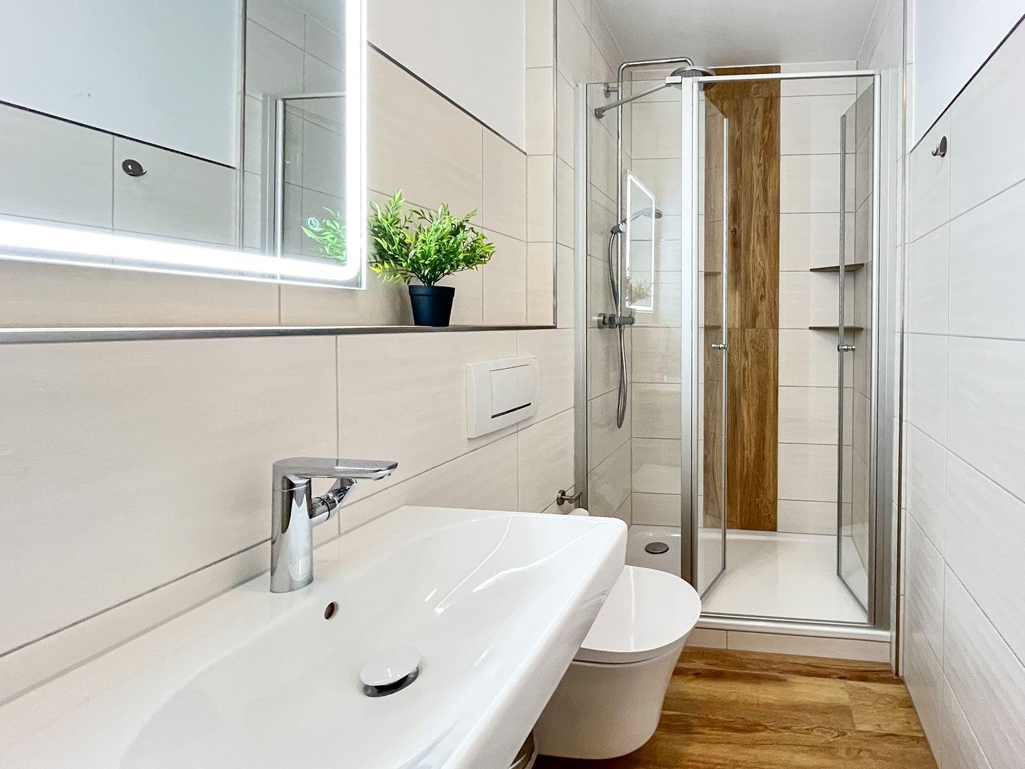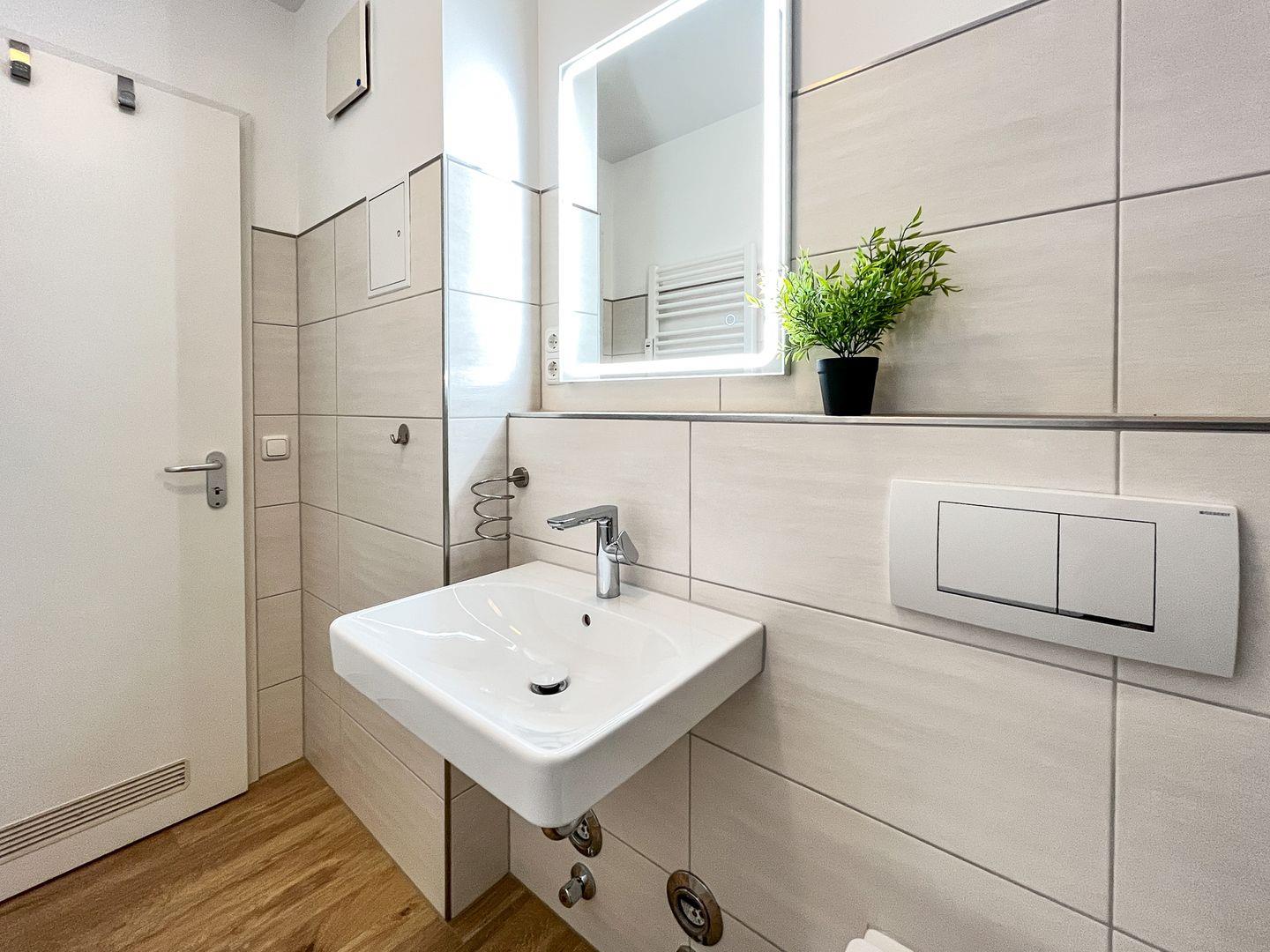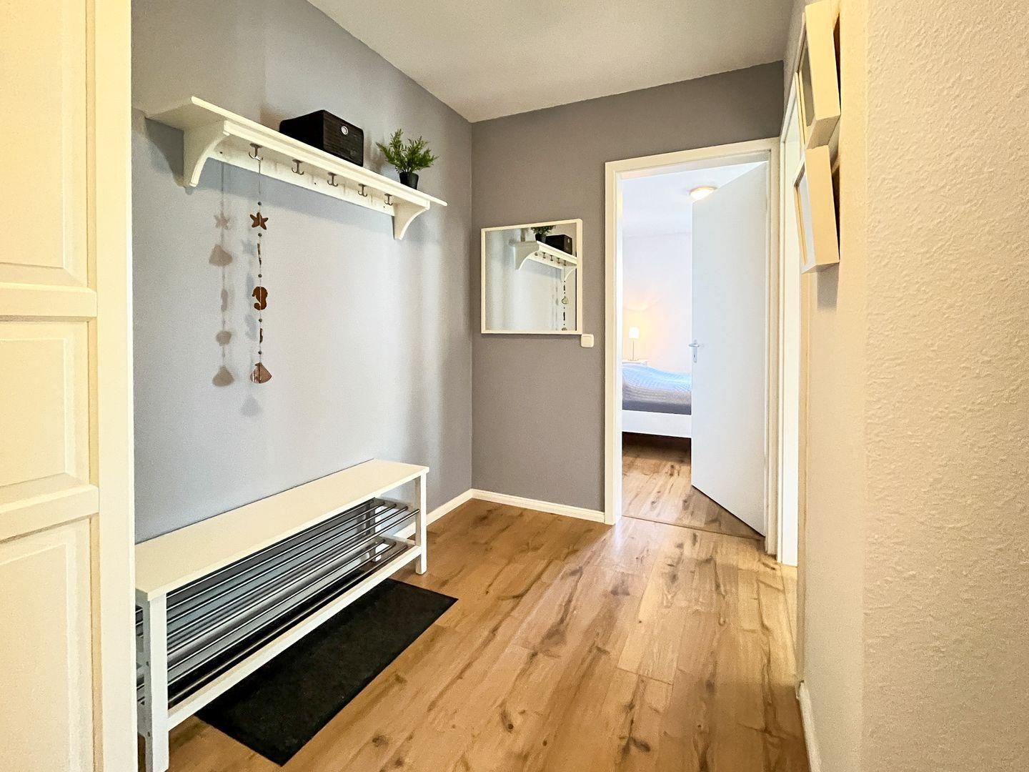 Die Ferienwohnung wurde mit Laminat ausgelegt. Ein gefliestes Duschbad ist vorhanden. In dieser Nichtraucherwohnung sind Haustiere nicht erlaubt. Ein Tiefgaragenstellplatz (Einfahrtshöhe 2,10 m) sorgt für die sichere Unterbringung Ihres Autos.