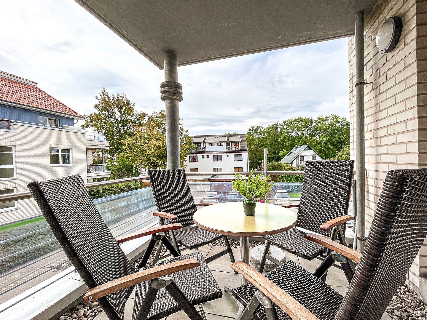 Den möblierten Balkon erreichen Sie vom Wohnzimmer aus. Im Wohnbereich befinden sich ein bequemes Schlafsofa (120 x 200 cm) und der Essbereich. Ein Flachbild-TV und eine Stereoanlage stehen zu Ihrer Unterhaltung zur Verfügung.