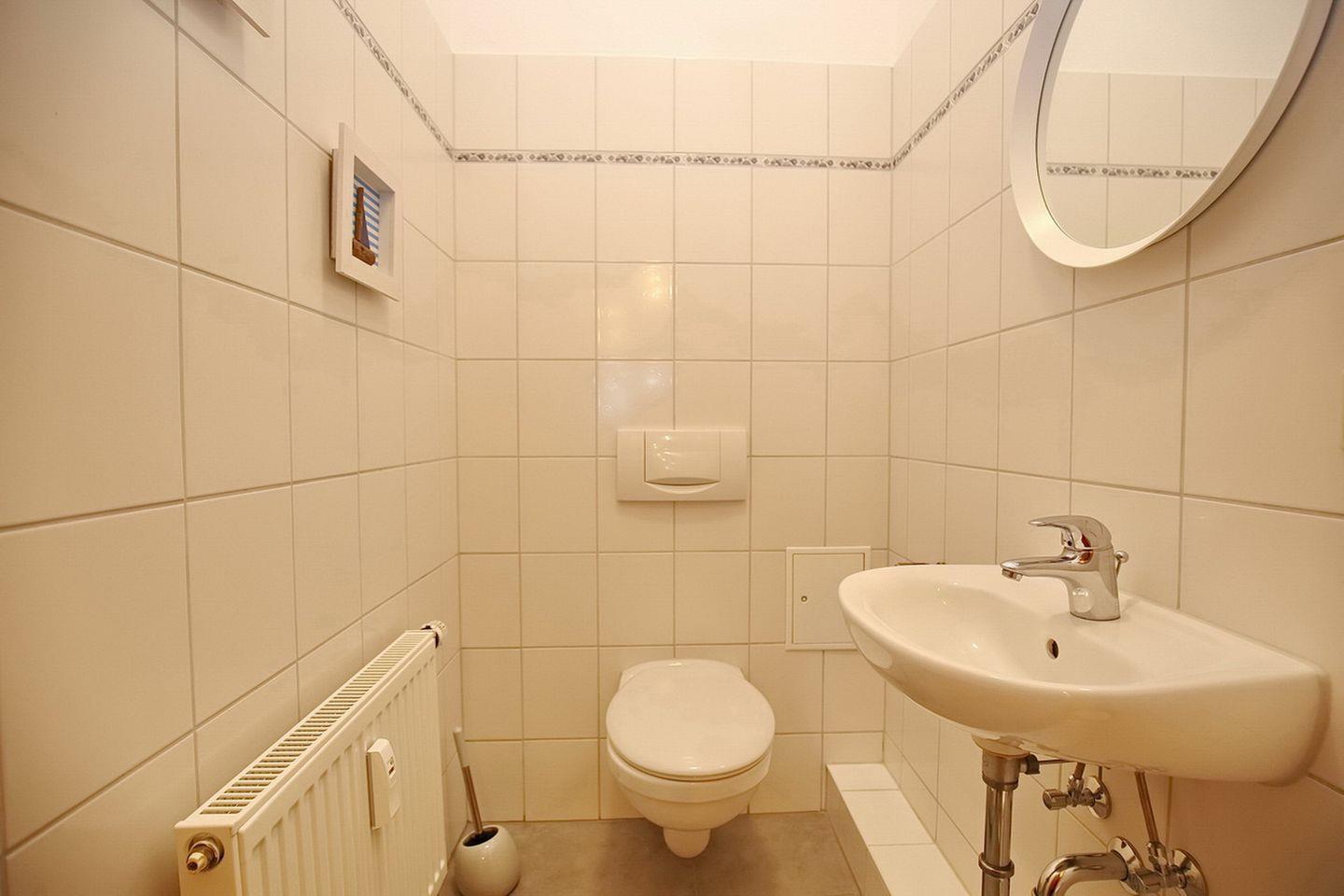 Die Ferienwohnung hat ein gefliestes Vollbad mit Badewanne und Dusche sowie ein zusätzliches Gäste-WC. Es ist eine Nichtraucherwohnung, in der maximal zwei Haustiere willkommen sind.