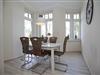 Der gemütliche Essbereich befindet sich unmittelbar neben der Küche. Durch die großen Fenster hast du einen schönen Blick auf die Strandpromenade.