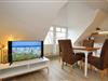 Der Essbereich und eine voll ausgestattete Küchenzeile sind im Wohnzimmer integriert. Hier stehen dir ein hochwertiges Cerankochfeld, ein Backofen, ein Kühlschrank mit Gefrierfach, ein Geschirrspüler, eine Mikrowelle und vieles mehr zur Verfügung. Von der Essecke aus genießt du den tollen Seeblick. Den zur Seeseite ausgerichteten Balkon mit fantastischem Seeblick kannst du von hier aus betreten, der natürlich auch mit Balkonmöbeln ausgestattet ist.