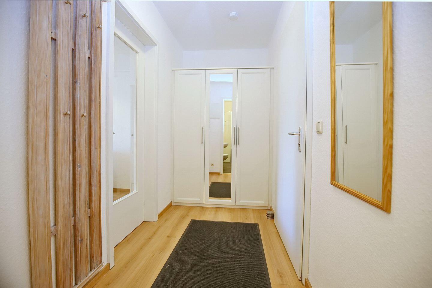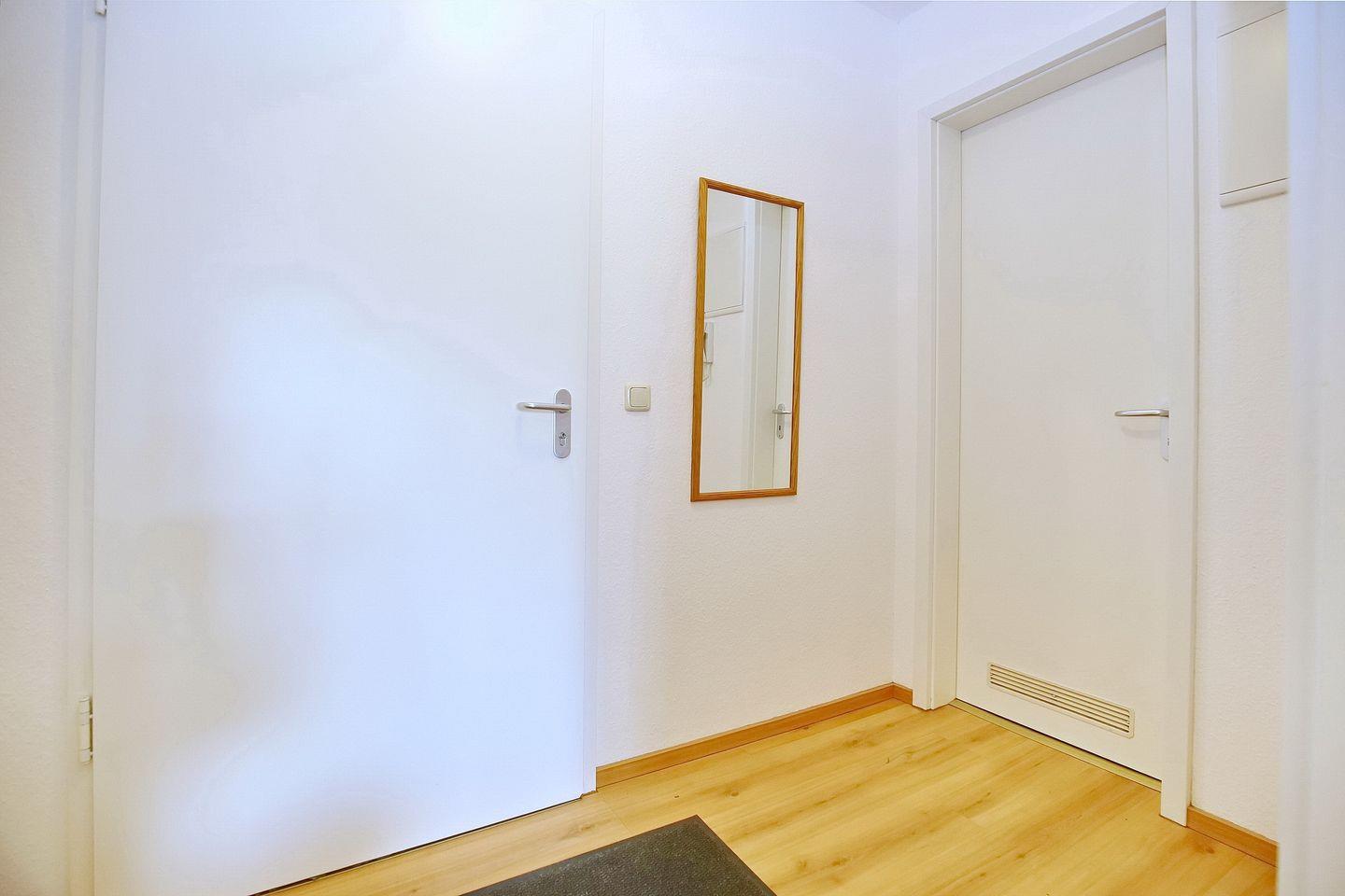 Eine Besonderheit dieser Ferienwohnung ist das Duschbad mit ebenerdiger Glasdusche. Als Bodenbelag wurde in dem Apartment Laminat gewählt. Der Küchenbereich ist gefliest. In dieser Nichtraucherwohnung sind Haustiere nicht erlaubt. Ein Tiefgaragenstellplatz (Einfahrtshöhe 2,10 m) sorgt für die sichere Unterbringung Ihres Autos.