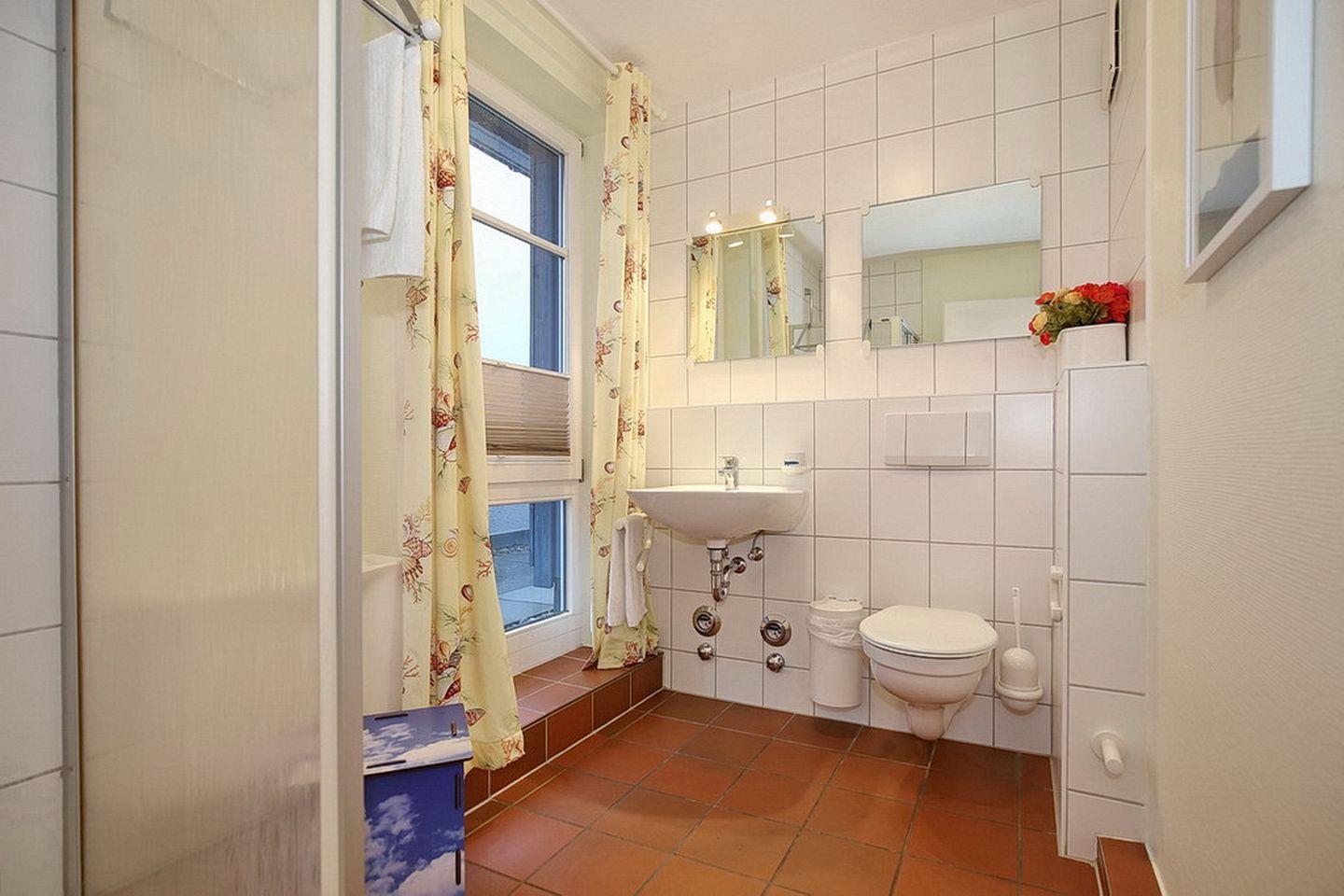 Als Bodenbelag wurde in dieser Ferienwohnung Fliese gewählt. Durch ein Fenster ist das Duschbad hell und freundlich. In dieser Nichtraucherwohnung sind Haustiere erlaubt.