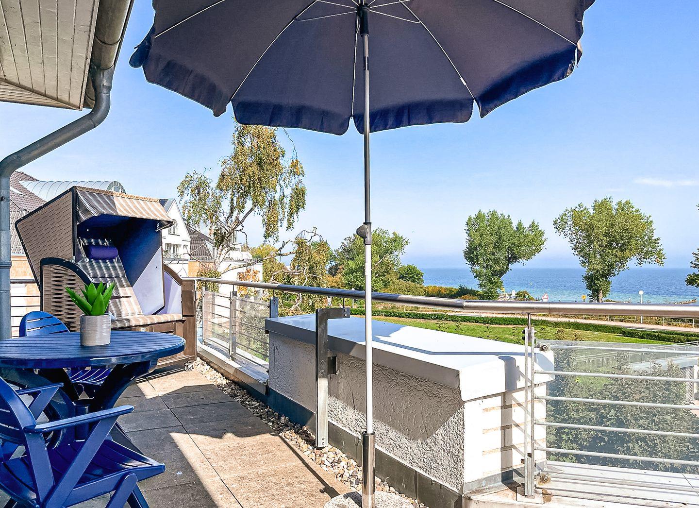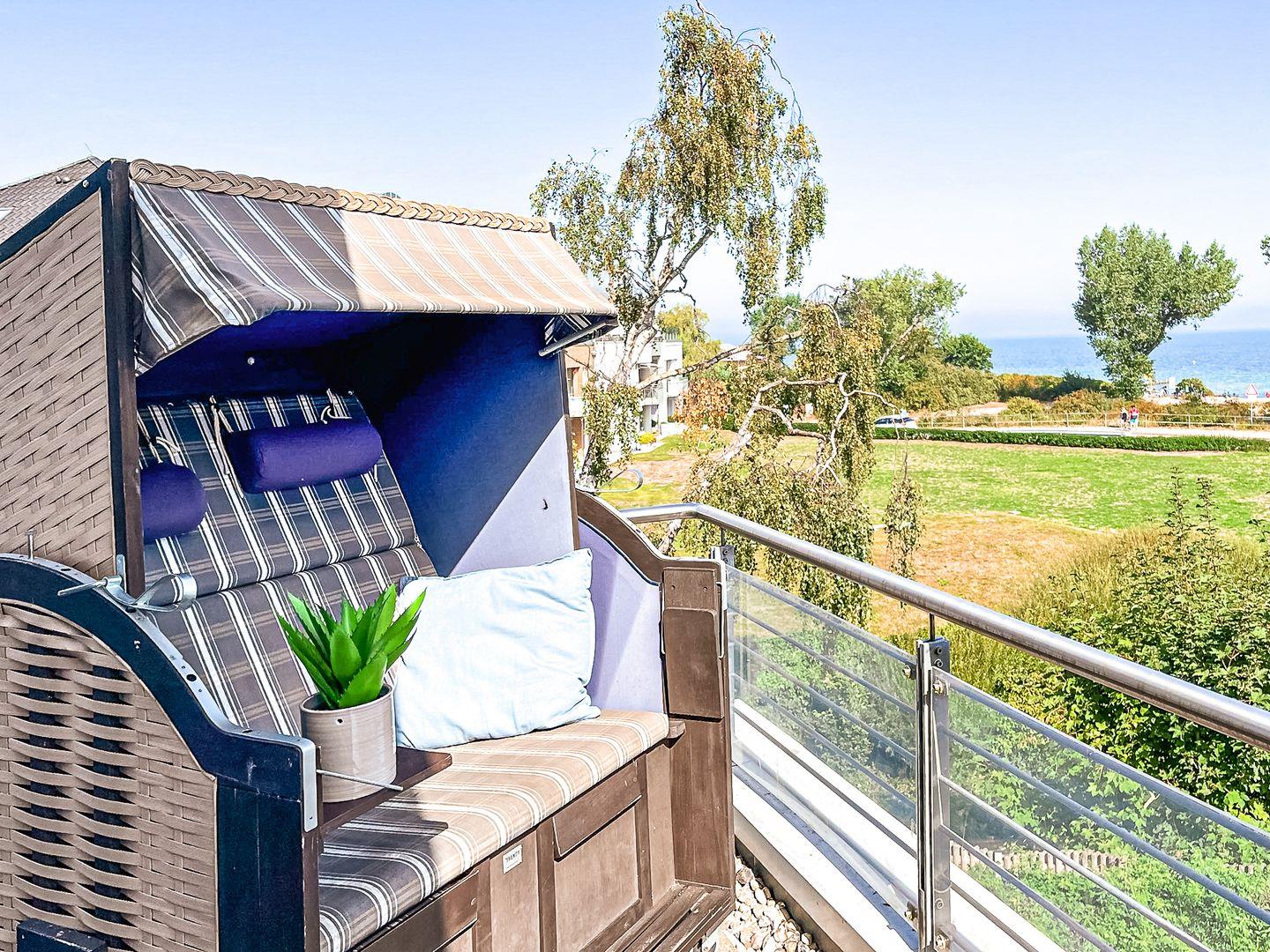 Die Ferienwohnung 51 in der Anlage Dünenblick in Boltenhagen ist eine 1-Zimmer-Wohnung für bis zu 2 Personen. Die 1-Zimmer-Ferienwohnung mit kostenfreiem WLAN (ohne Gewähr) liegt im 2. Obergeschoss und hat einen Balkon mit Strandkorb und Seeblick in Nord-West Lage.