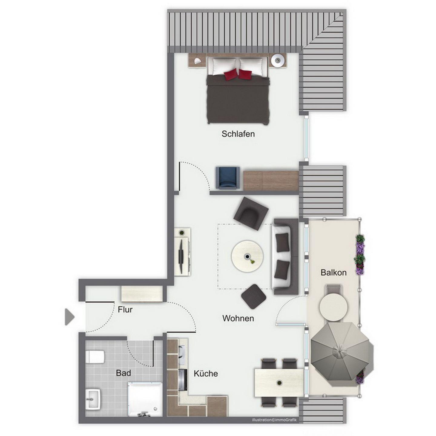 Dein mit Laminat ausgelegtes Wohnzimmer ist gut ausgestattet - von der Stereoanlage bis zum SAT-Fernsehen (Flatscreen-TV) mit Sky-Empfang. Hier gibt es eine ausziehbare Doppelschlafcouch (140 x 200 cm), die zwei zusätzliche Schlafplätze bietet. Vom Wohnzimmer aus kannst du den mit Gartenmöbeln ausgestatteten Balkon betreten.
