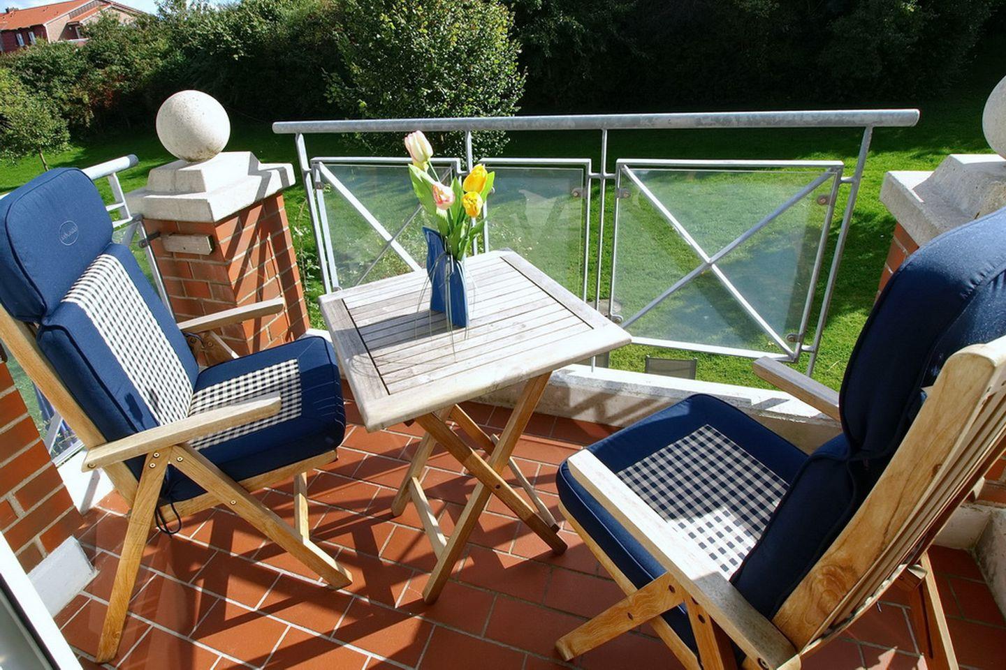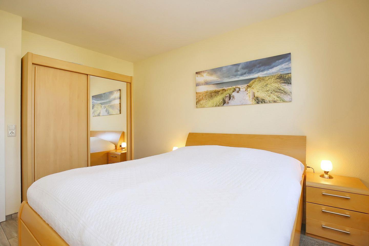 Die 3-Z.-Wohnung mit Balkon in Süd-Lage liegt im 1. Obergeschoss. Die Wohnung mit ca. 59 qm² Wohnfläche hat einen Wohn- und Essbereich, eine separate Küche, zwei Schlafzimmer, ein Duschbad und einen Balkon. Zum Strand sind es von der Ferienanlage Sünnslag nur ca. 400 m.