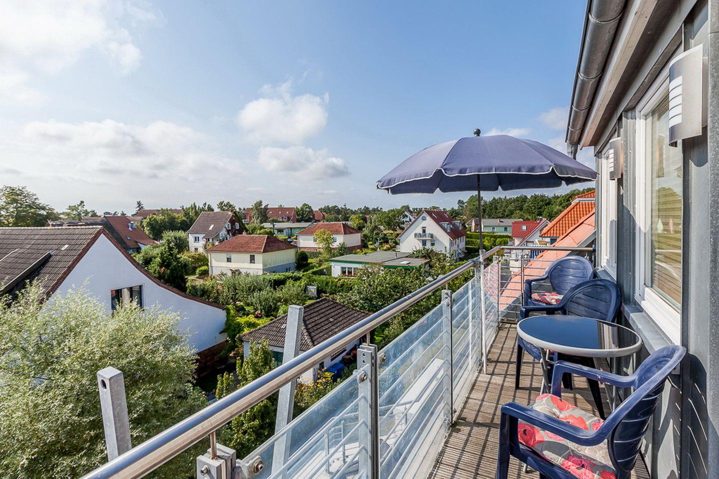 Die Ferienwohnung 53 in der Anlage Dünenblick in Boltenhagen ist eine 2-Zimmer-Wohnung für bis zu 3 Personen. Die 2-Zimmer-Ferienwohnung liegt im 3. Obergeschoss und hat einen Balkon mit Seeblick zur Ostsee. WLAN (ohne Gewähr) und ein PKW- Stellplatz sind kostenfrei.