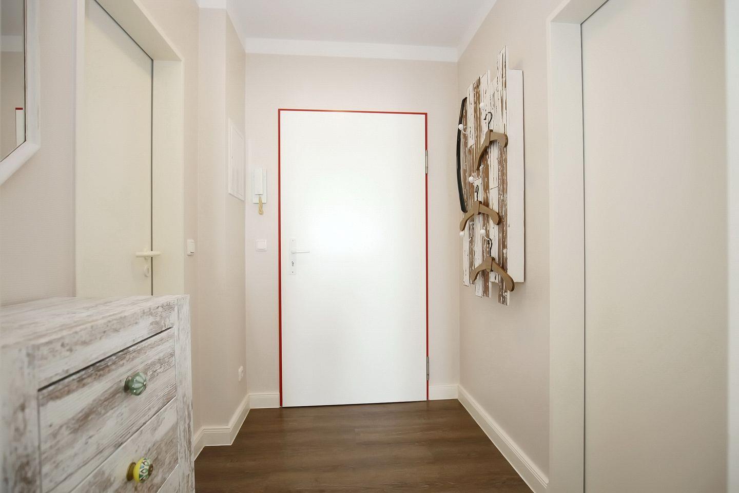 Die Ferienwohnung Nr. 8 befindet sich im Erdgeschoss und bietet dir auf ca. 50 m² ein Wohnzimmer mit Küchenzeile, ein Schlafzimmer, ein Duschbad sowie eine östlich ausgerichtete Terrasse. Zum Strand sind es nur 70 Meter.