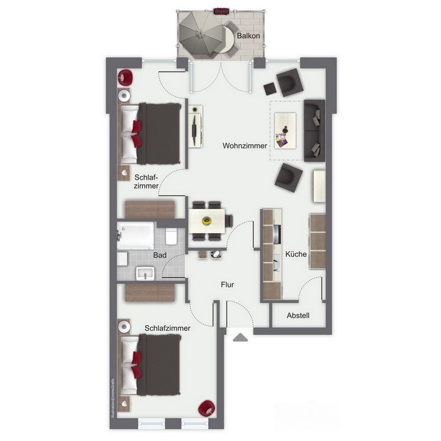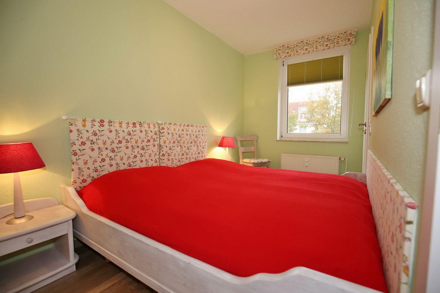Die ansprechend eingerichtete Wohnung im 1. Obergeschoss bietet auf ca. 59 m² ein Wohnzimmer mit Küchenzeile, zwei Schlafzimmer, das Duschbad sowie den Süd-Ost-Balkon. Der Strand befindet sich in ca. 400 m Entfernung.