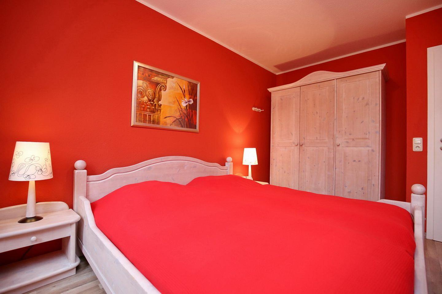 Ein geräumiges, gemütliches Schlafzimmer verfügt über ein Doppelbett (2 x 90 x 200 cm). Der 3-türige Kleiderschrank bietet viel Platz für deine Urlaubsgarderobe. Auch im kleineren Schlafzimmer befindet sich ein Doppelbett (2 x 90 x 200 cm). In beiden Schlafräumen sind die Böden mit Laminat ausgelegt. Blickdichte Vorhänge dienen in dieser Ferienwohnung als Sicht- bzw. Sonnenschutz.