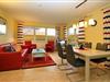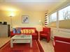 Im Wohnzimmer befindet sich eine ausziehbare Doppelschlafcouch (150 x 200 cm) und es ist sehr gut ausgestattet mit Flachbildschirm-TV, Blu-ray-Player, Stereoanlage, Videorecorder sowie DVD-Player, was für Unterhaltung an Regentagen sorgt. Du gelangst vom Wohnzimmer direkt auf den süd-westlich ausgerichteten Balkon mit den Balkonmöbeln. Bis in die Abendstunden kannst du hier die Sonne genießen.
