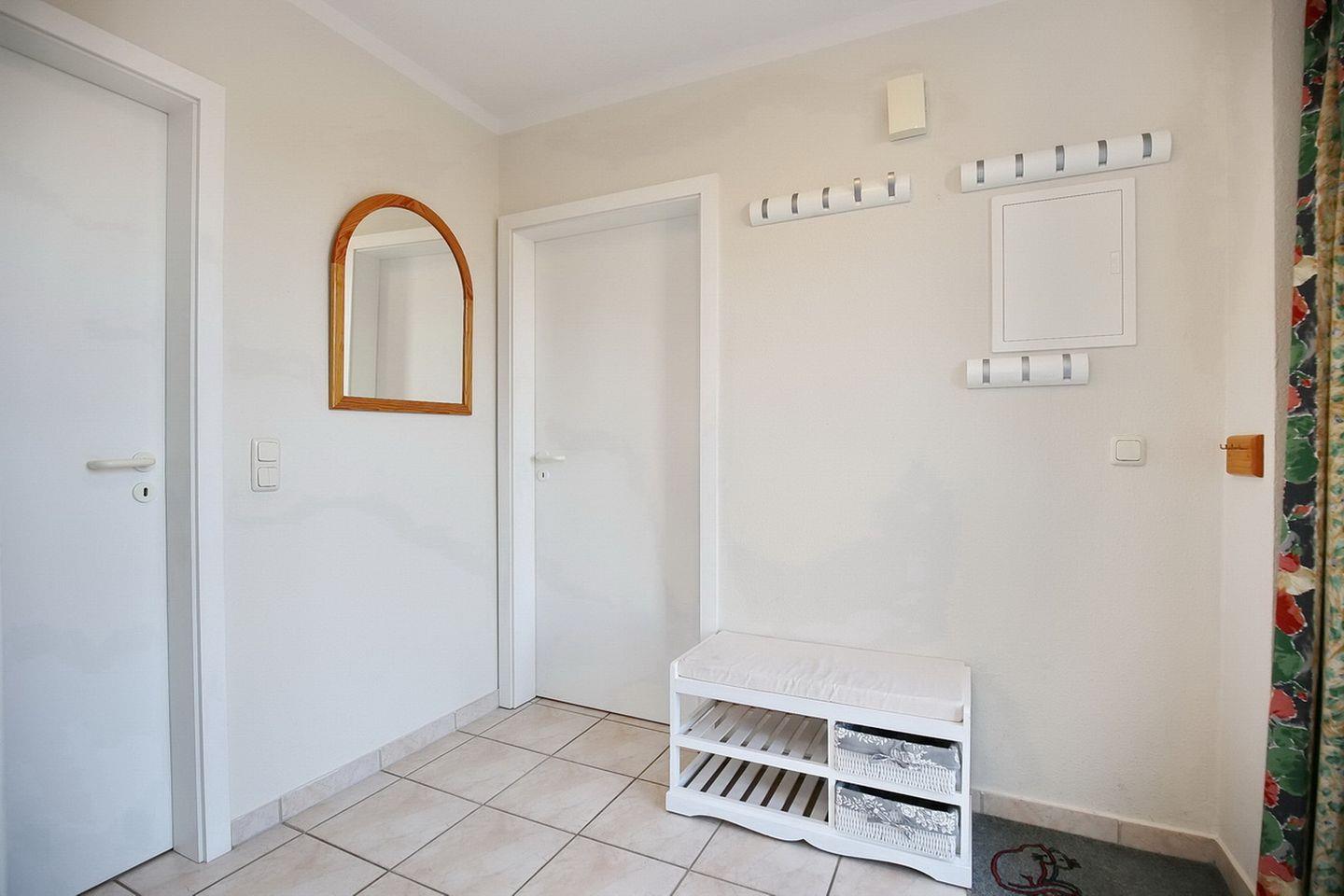Im 1. OG liegt die ca. 50 m² große 2-Zi.-Wohnung mit Balkon und eigenem Zugang über eine Außentreppe. Während deines Aufenthaltes bewohnst du ein Wohnzimmer, eine separate Küche, ein Schlafzimmer und ein gefliestes Duschbad. Die Entfernung zum Strand beträgt von der Ferienanlage Sünnslag ca. 400 m.