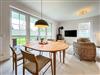 Im Wohnzimmer befindet sich eine Couch, ein Kamin, ein großer schwenkbarer LCD-Fernseher mit PC-Anschluss sowie ein DVD-Player. An dem modernen, gemütlichen Essbereich finden 4 Personen Platz. Vom Wohnzimmer aus gelangst du auf die, mit Terrassenmöbeln und Strandkorb ausgestattete, Terrasse und in den angrenzenden Garten. Hier kannst du deinen Kaffee genießen und die Kinder in Sichtweite spielen. (Teilseeblick!)
