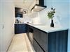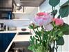 Die hochwertige Küchenzeile der Ferienwohnung ist vom Wohnzimmer etwas abgeteilt und verfügt über Geschirrspüler, Herd mit Backofen und einem 4-Platten-Cerankochfeld, extrabreiten Dunstabzug, Kühlschrank mit Tiefkühlfach, Mikrowelle und vieles mehr.