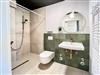 Das moderne Duschbad dieser Ferienwohnung ist mit einer Fußbodenheizung ausgestattet und bietet angenehmen Duschkomfort. Ein durchgehender Fliesenboden befindet sich in allen Räumen, an den Fenstern sind Jalousien und Vorhänge.