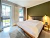 Im großen Schlafzimmer befindet sich ein Doppelbett (2 x 90 x 200 cm) und im kleinen Schlafzimmer ist ein Etagenbett (90 x 200 cm) vorhanden. Von beiden Schlafzimmern aus kannst du eine zweite Terrasse betreten. Auch hier kannst du den Teilseeblick genießen. Beide Schlafzimmer haben Verdunklungsplissees.