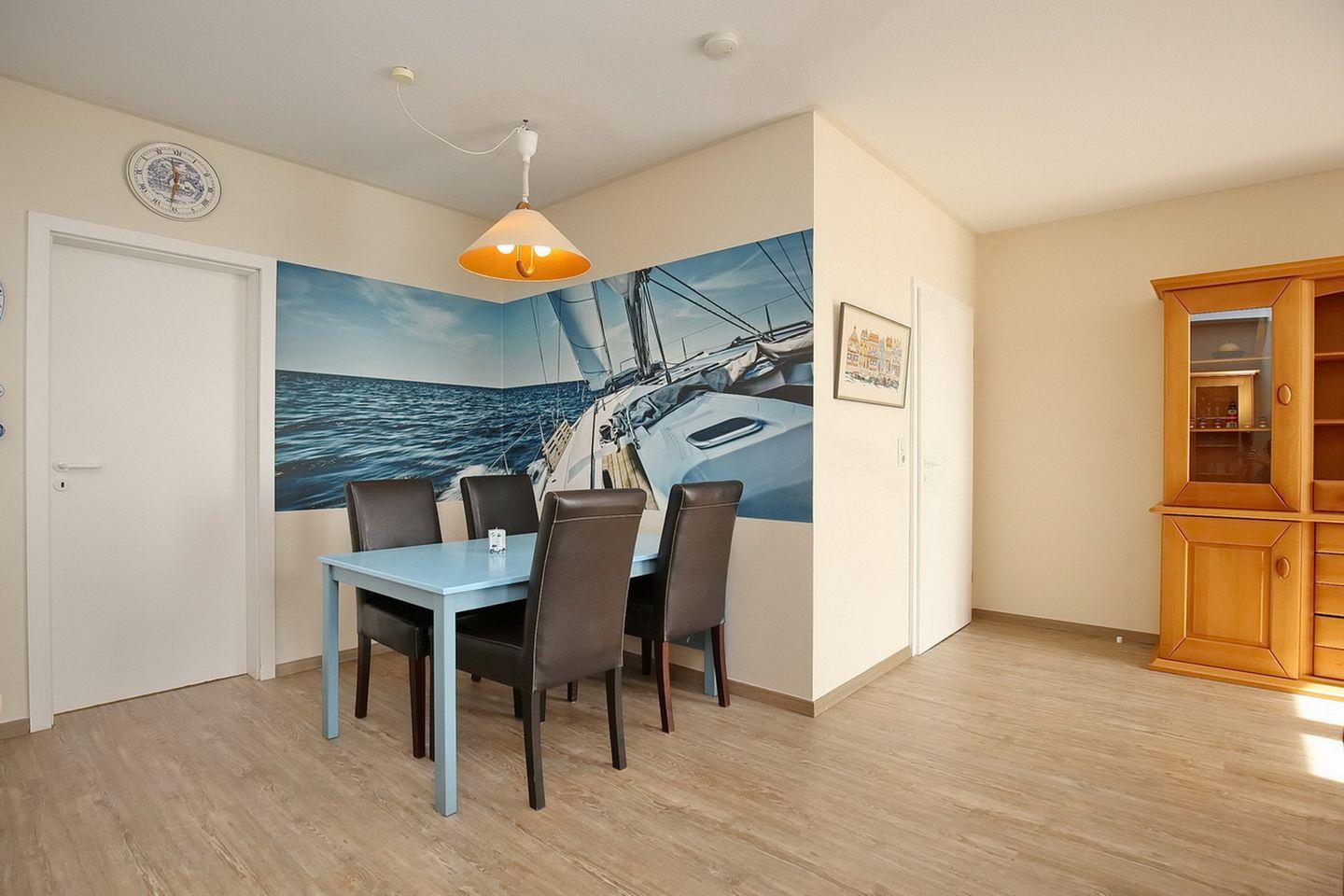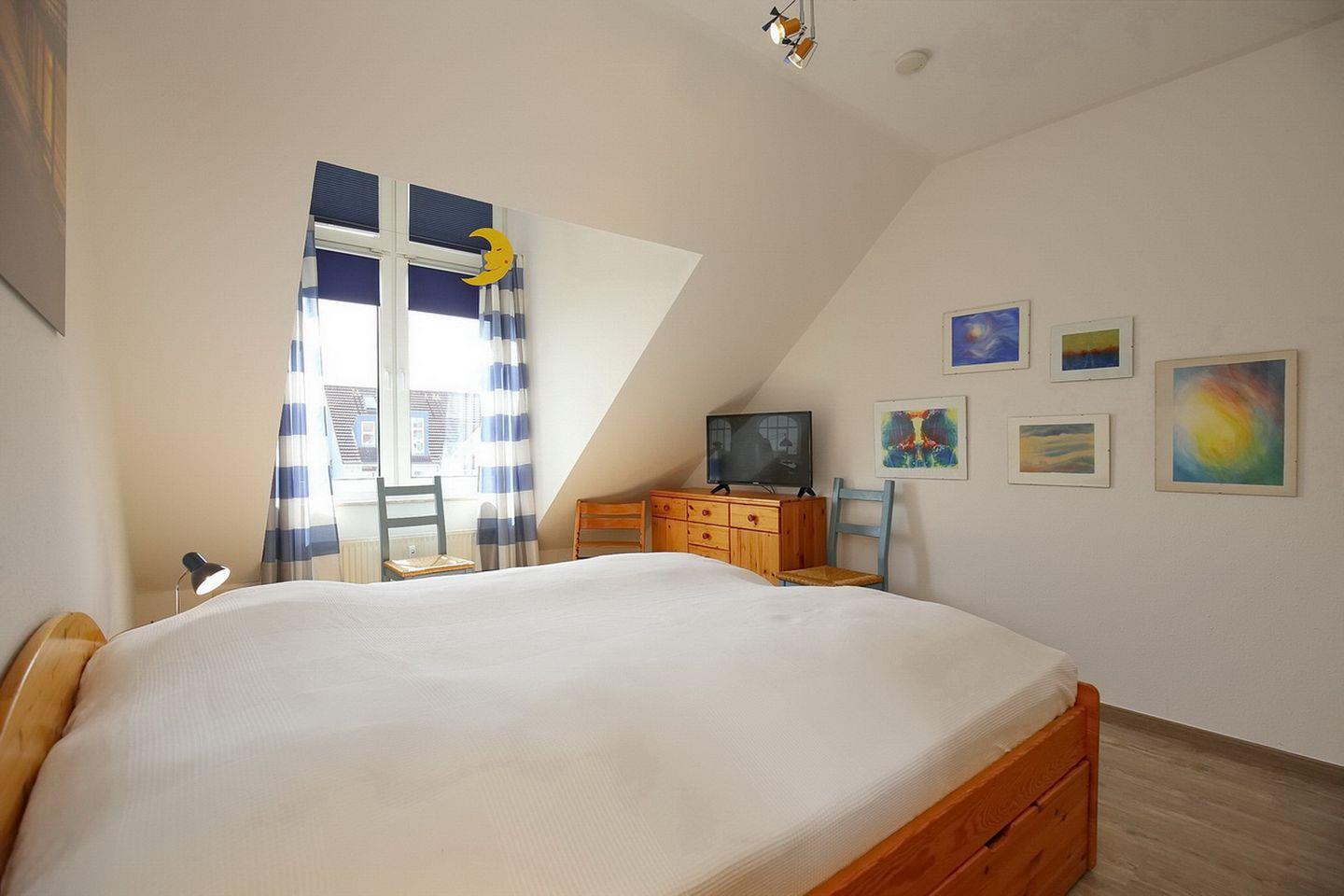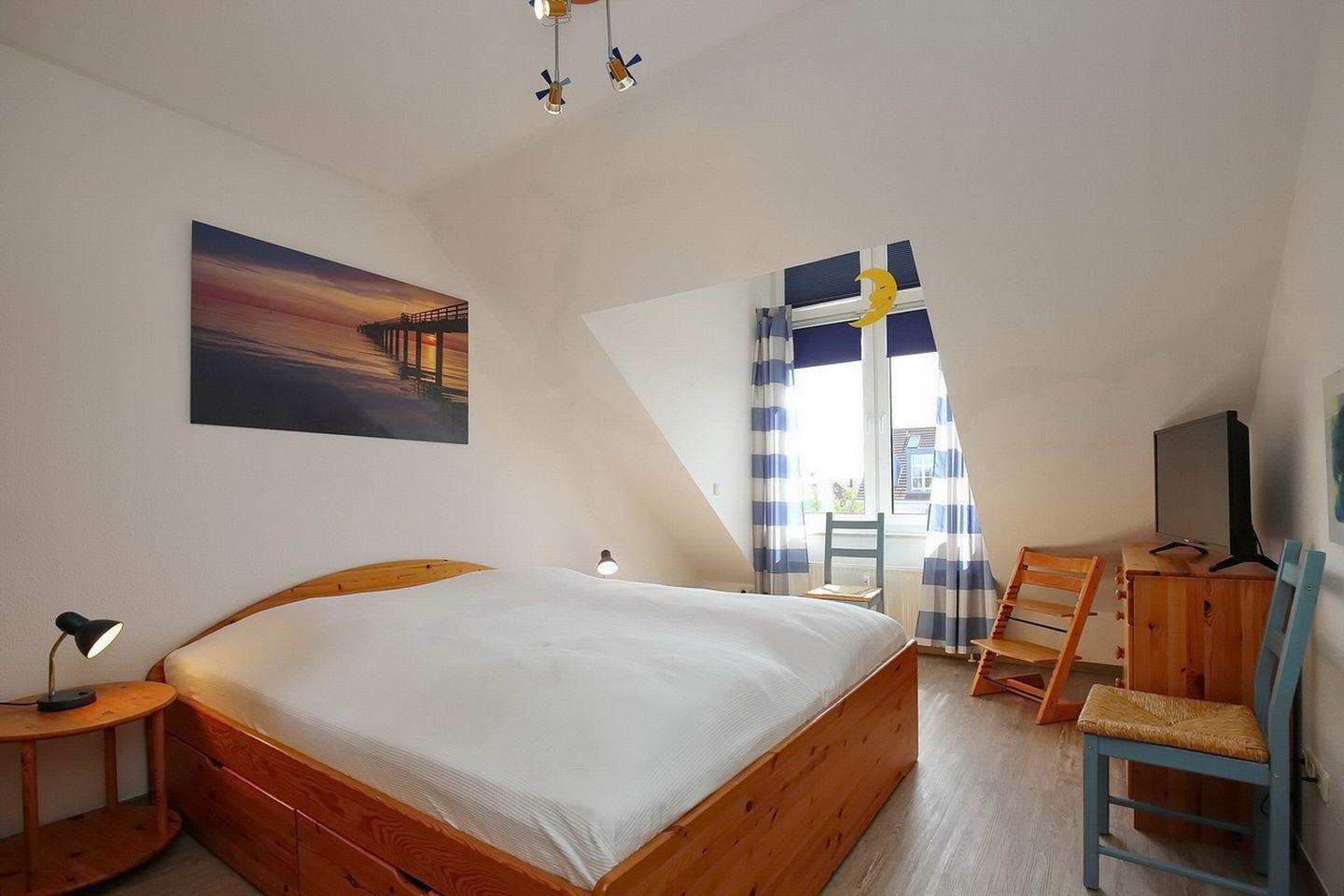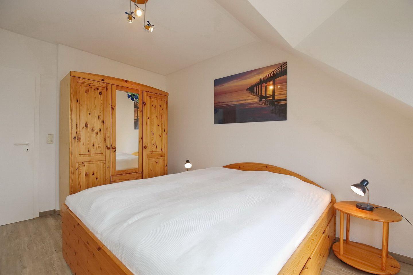 Diese geräumige ca. 68 m² große 3-Zimmer-Wohnung ist für 4 Personen und im freundlichen Landhausstil ausgestattet (2.OG/DG). Das Appartement besteht aus zwei Schlafzimmern mit viel Stauraum. WLAN (ohne Gewähr) inklusive.