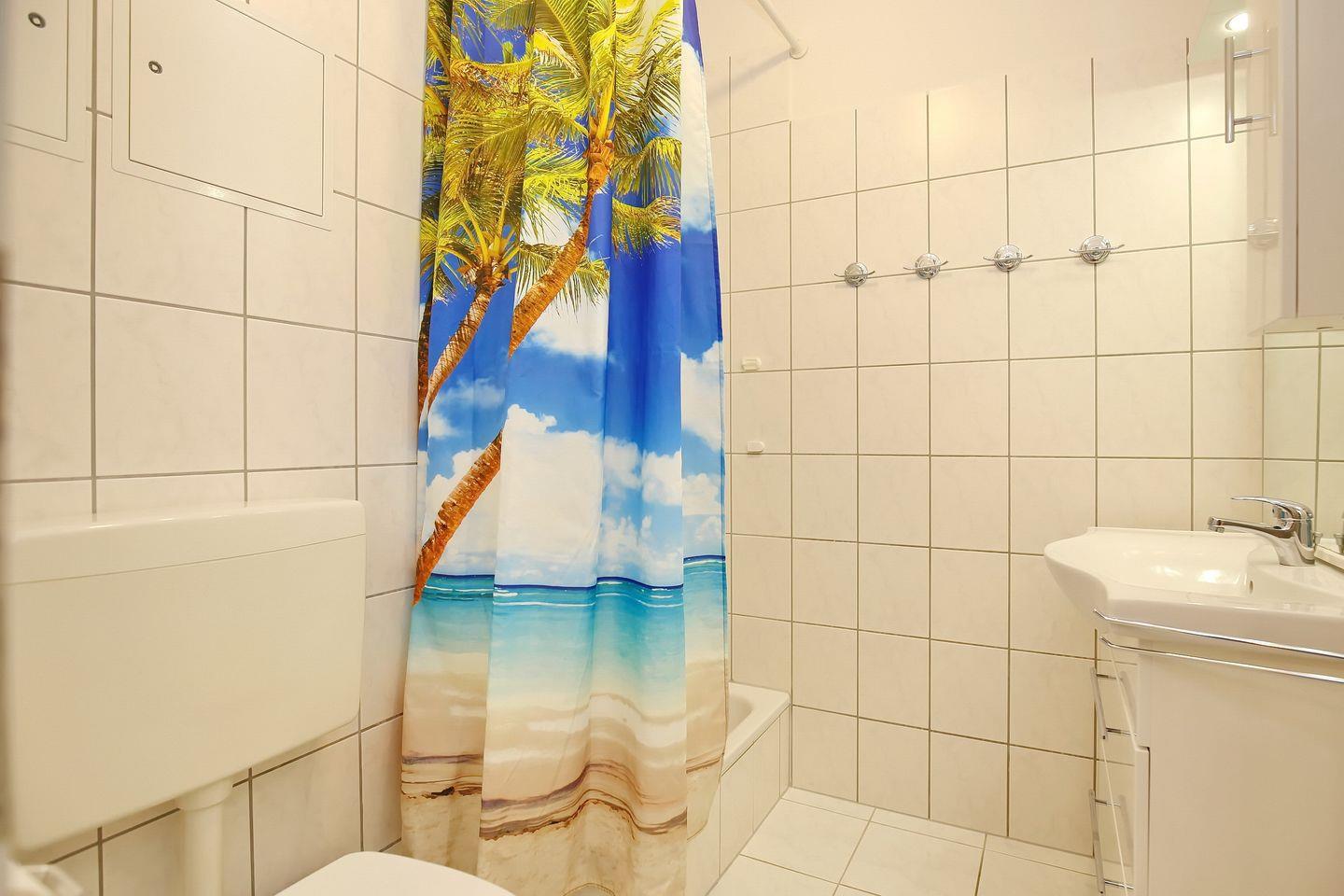Auch ein gefliestes Duschbad ist vorhanden. Haustiere sind in der Nichtraucherwohnung nicht gestattet.