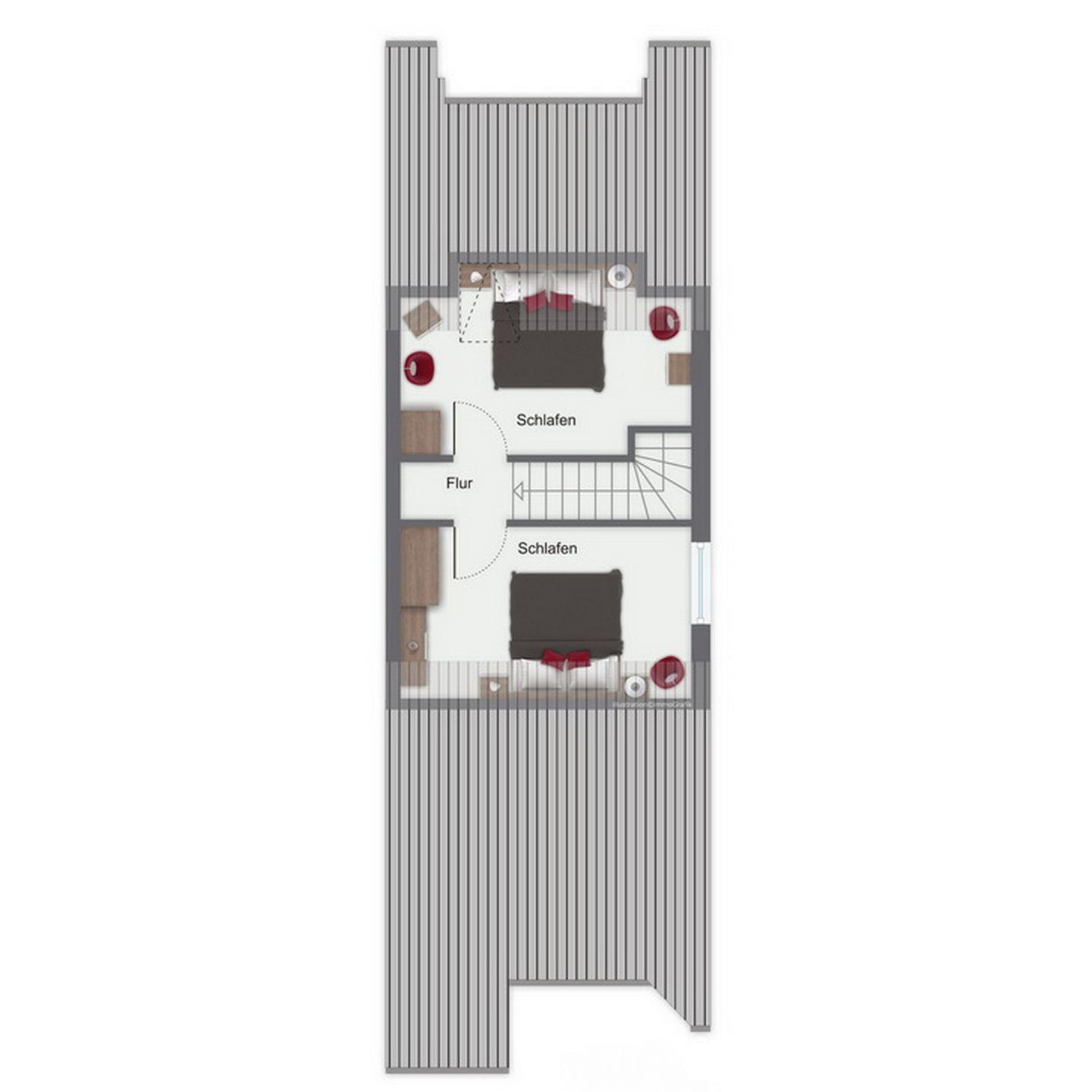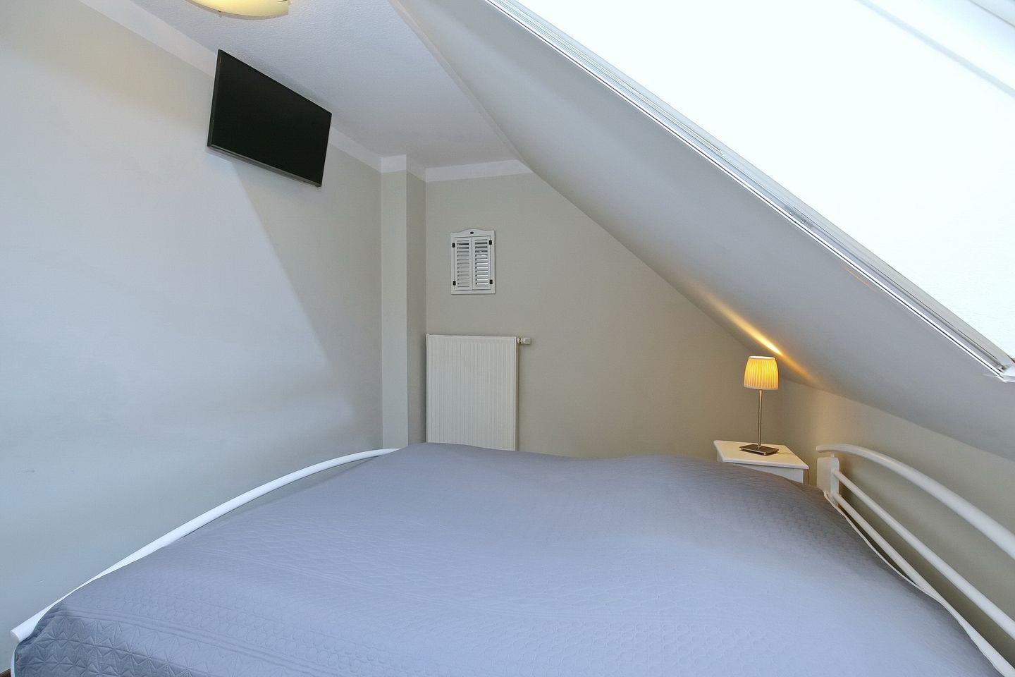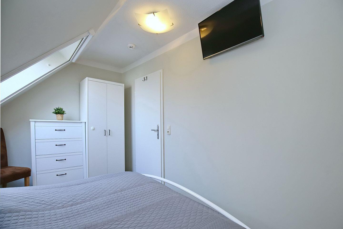 Die oberen Schlafzimmer schaffen mit jeweils einem komfortablem Doppelbett (2 x 90 x 200 cm) und einem Kleiderschrank eine wohnliche Atmosphäre. Im unteren Schlafzimmer stehen zwei Einzelbetten (2 x 90 x200 cm) sowie ein Kleiderschrank. Zur Verdunklung wurden an den Fenstern Rollos angebracht. Ebenso sind Fliegenschutzgitter vorhanden. Der Boden wurde in allen Schlafräumen mit Laminat und flauschigen Läufern ausgelegt.