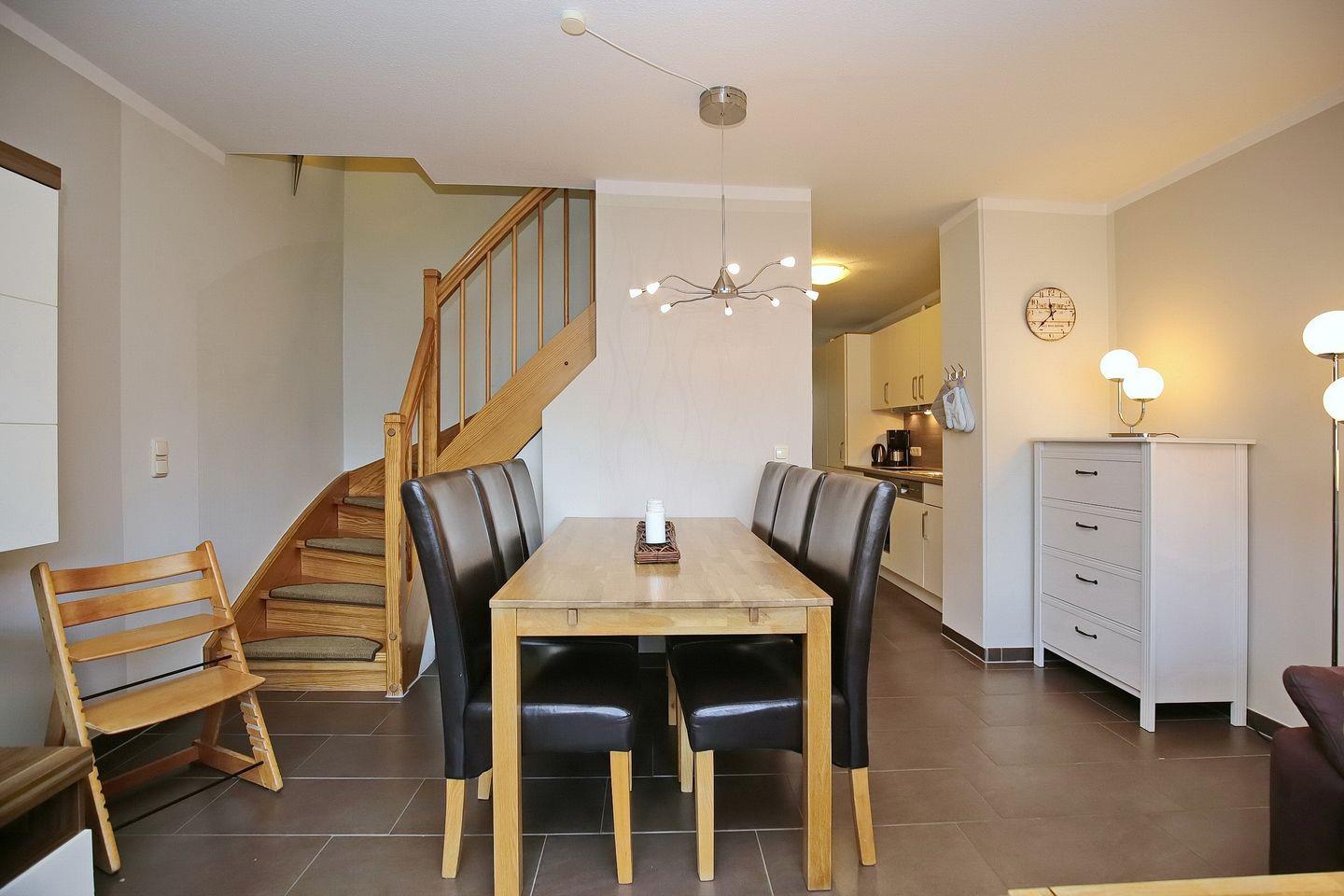 Dein sehr modernes 4-Zimmer-Appartement verläuft über zwei Ebenen und befindet sich im 1. OG im Haus 8. Mit ca. 70 qm² ist deine Wohnfläche großzügig angelegt. Du findest hier einen Wohn- und Essbereich mit Balkon in Süd-West Lage, drei Schlafzimmer, eine Küchenzeile und ein Duschbad vor. Die Entfernung zum Strand beträgt von der Anlage Papillon ca. 250 m.