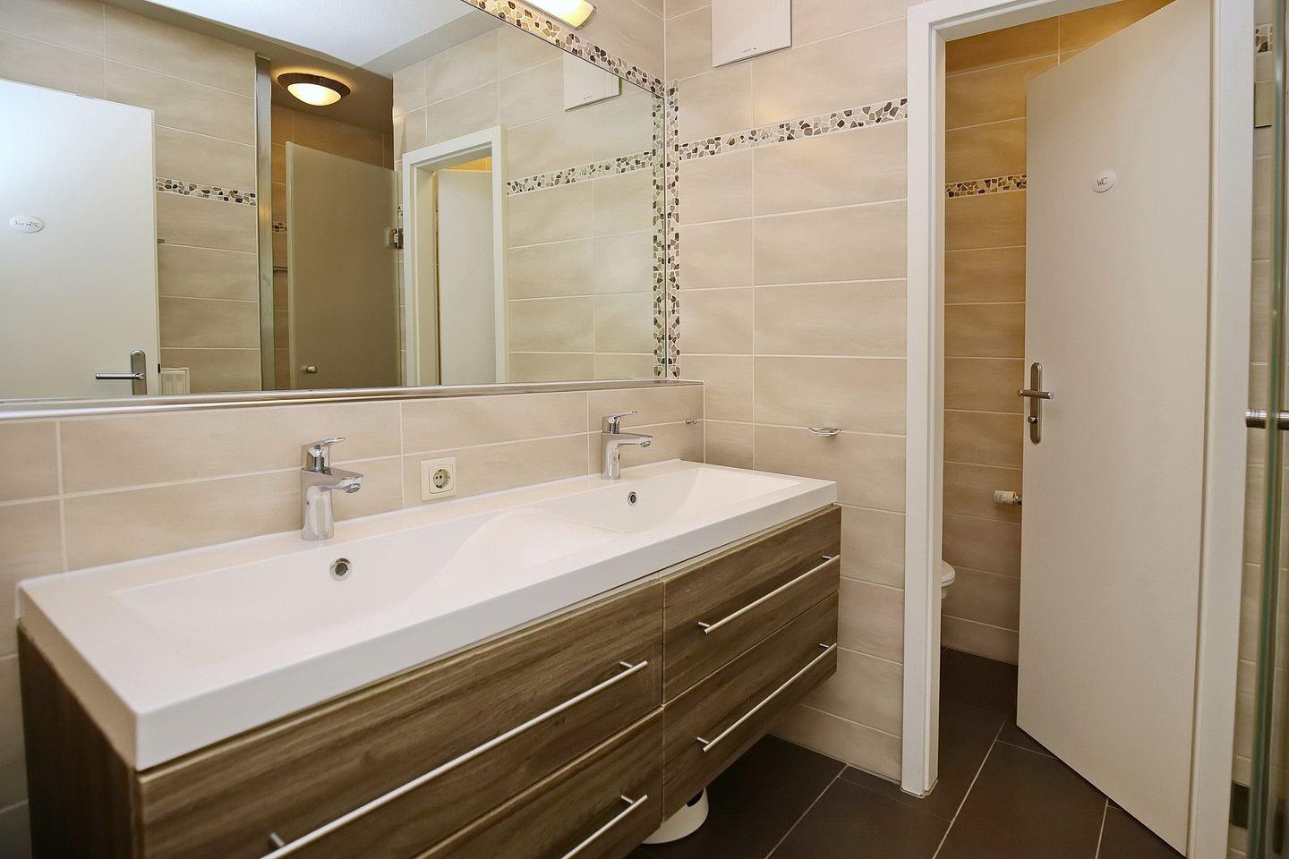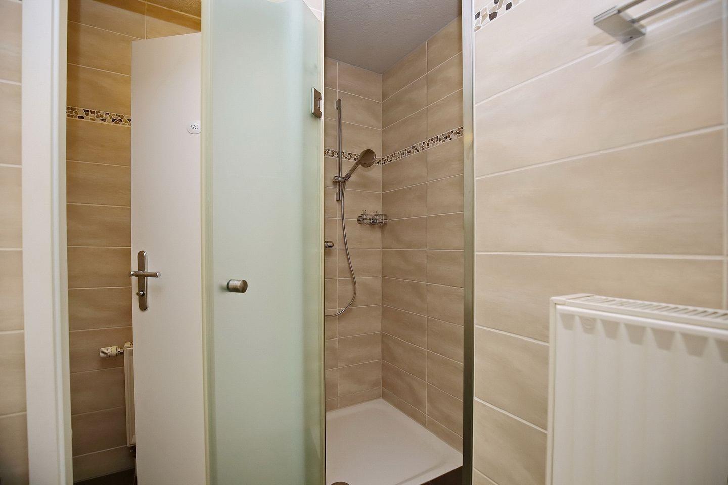 Im modern gefliesten Duschbad gibt es eine ebenerdige Dusche mit Klarglas, ein separates WC und ein Doppelwaschbecken. Die Wohnung verfügt auch über ein Gäste-WC. Fahrräder können im Fahrradkeller oder am Fahrradständer am Haus abgestellt werden. In dieser Nichtraucherwohnung sind Haustiere nicht gestattet.