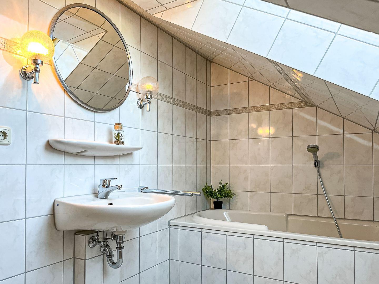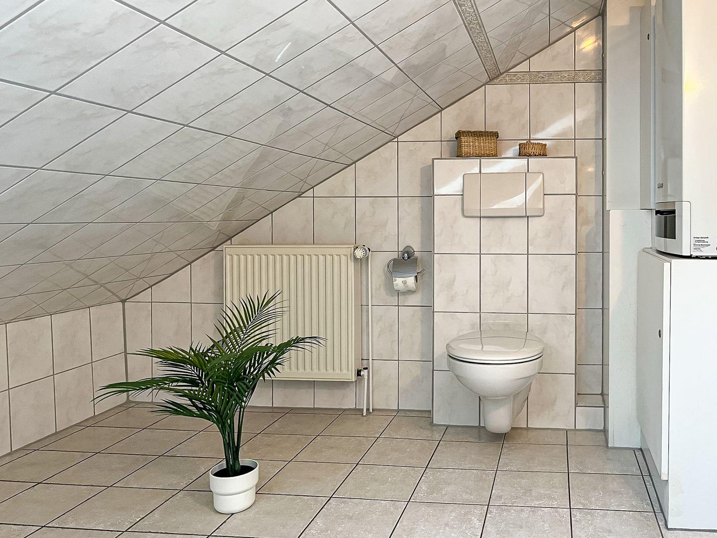 Als Schlafmöglichkeiten erwarten dich in einem Schlafzimmer 1 Doppelbett (2 x 90 x 200 cm) und im zweiten Schlafzimmer 2 Einzelbetten (je 90 x 190 cm). Ein Kinderbett inklusive Matratze ist ebenfalls vorhanden. In dieser Doppelhaushälfte stehen unseren Gästen ein Duschbad und ein großes Bad mit Badewanne zur Verfügung. Auch eine Waschmaschine ist hier vorhanden.