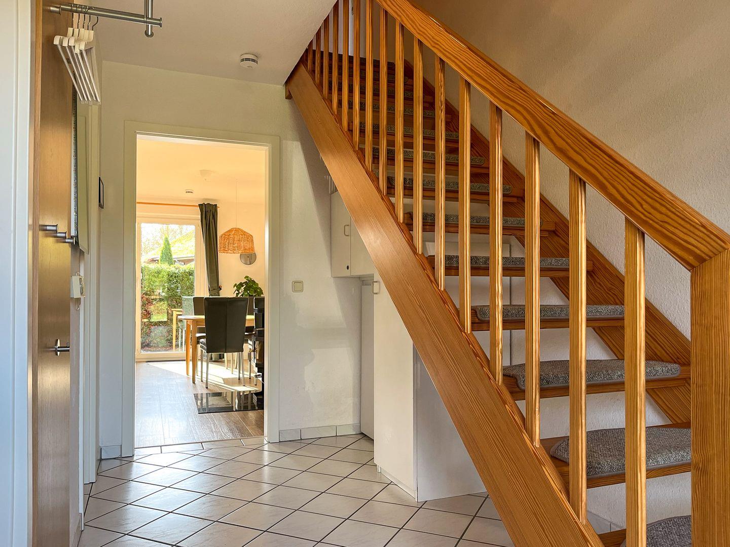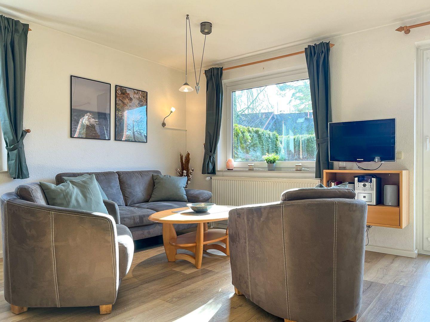 Die Doppelhaushälfte Nr. 51 a des Urlauberdorfes ist geschmackvoll und behaglich eingerichtet. Auf ca. 63 m² über 2 Ebenen verlaufend verfügst du hier über das Wohnzimmer mit integrierter Küchenzeile, 2 Schlafzimmer, 2 Bäder sowie eine Terrasse in Richtung Süden. Zum Strand sind es ca. 350 Meter.