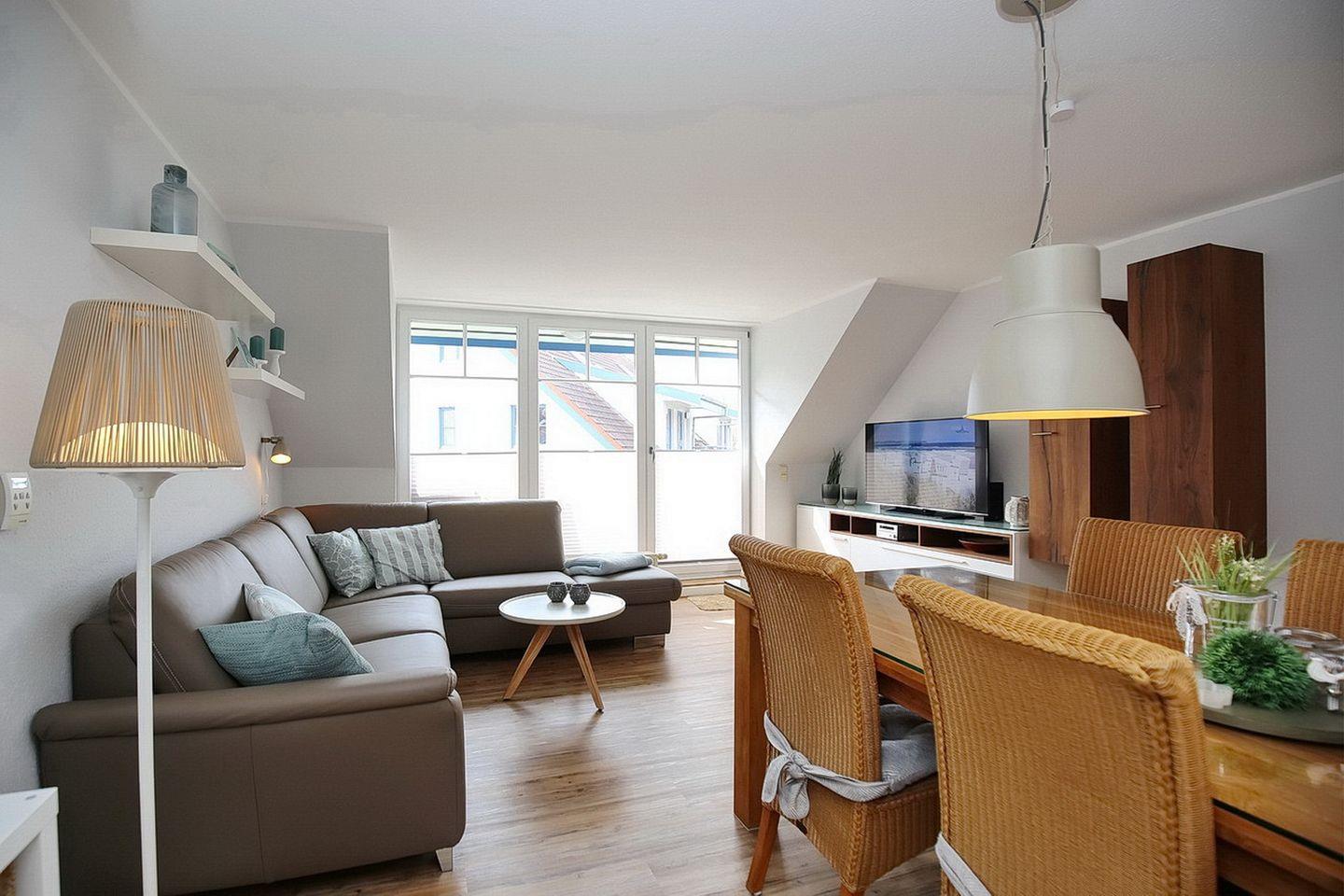 Die Ferienwohnung 10-6 in der Anlage Papillon ist eine schöne 3-Zimmer-Wohnung für bis zu 4 Personen. Die Ferienwohnung liegt im 1. OG und hat einen Balkon in Süd-West Lage. WLAN (ohne Gewähr) ist in der Wohnung inklusive.