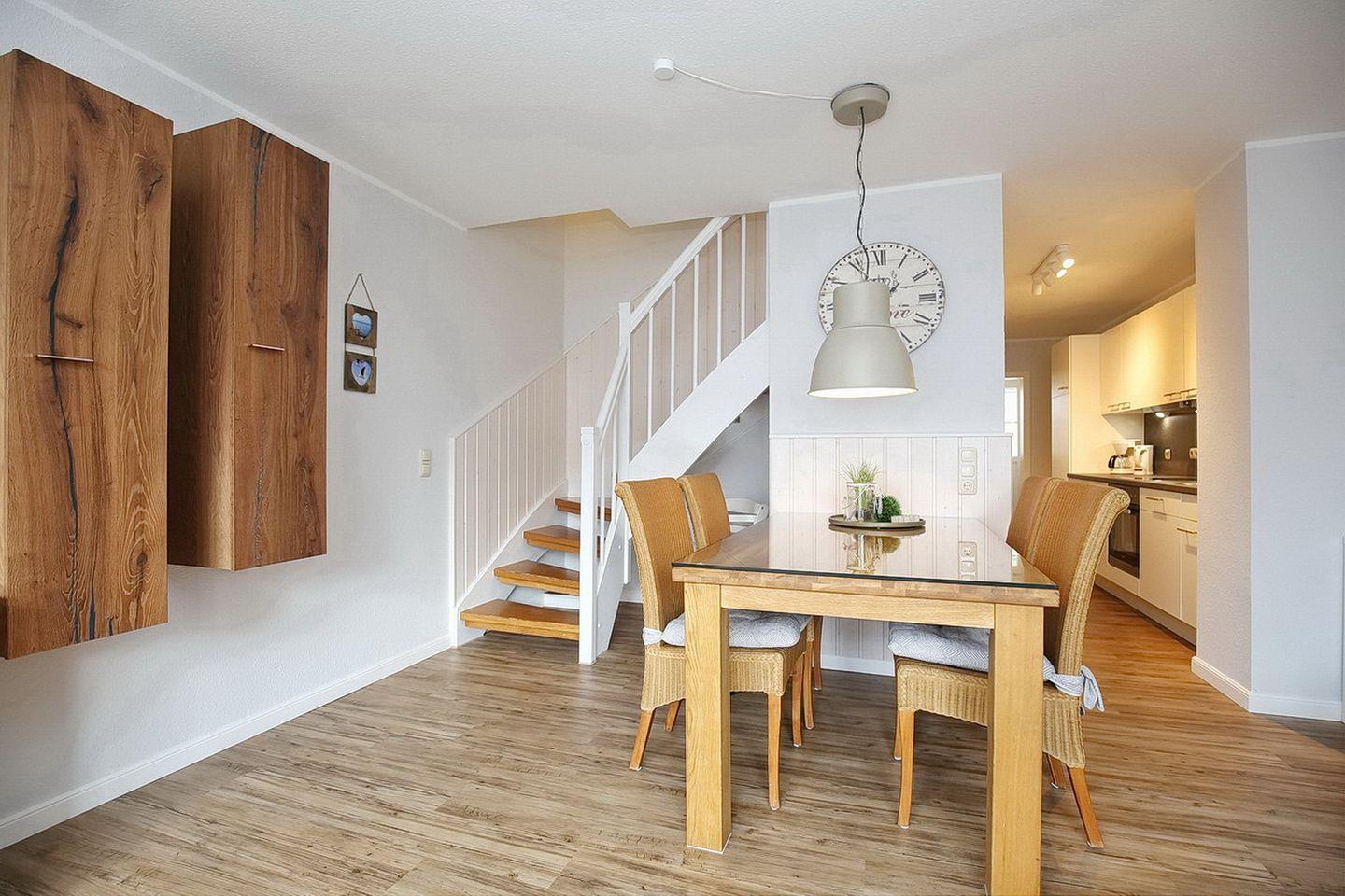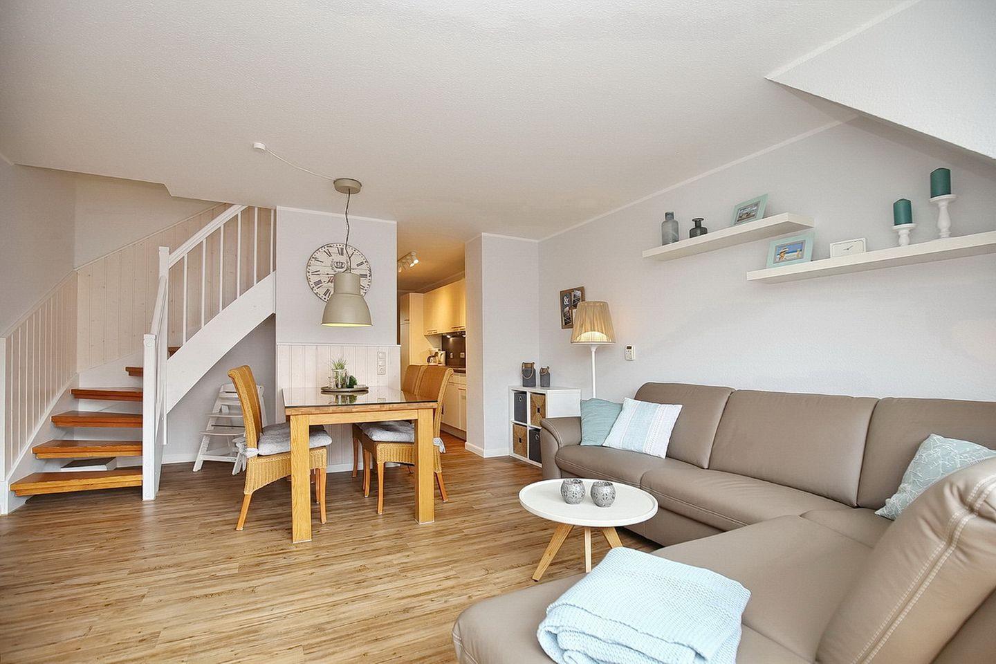 Dein gemütliches 3-Zi-Appartement im 1.OG verläuft über zwei Ebenen und hat einen Balkon in Süd-West Lage. Mit ca. 58 m² Wohnfläche ist für bis zu 4 Personen genügend Platz. Auf der unteren Ebene stehen dir der Wohn- und Essbereich, sowie das Duschbad zur Verfügung. Im Obergeschoss verteilen sich hier zwei Schlafräume. Zum Strand sind es von der Anlage Papillon ca. 250 m.