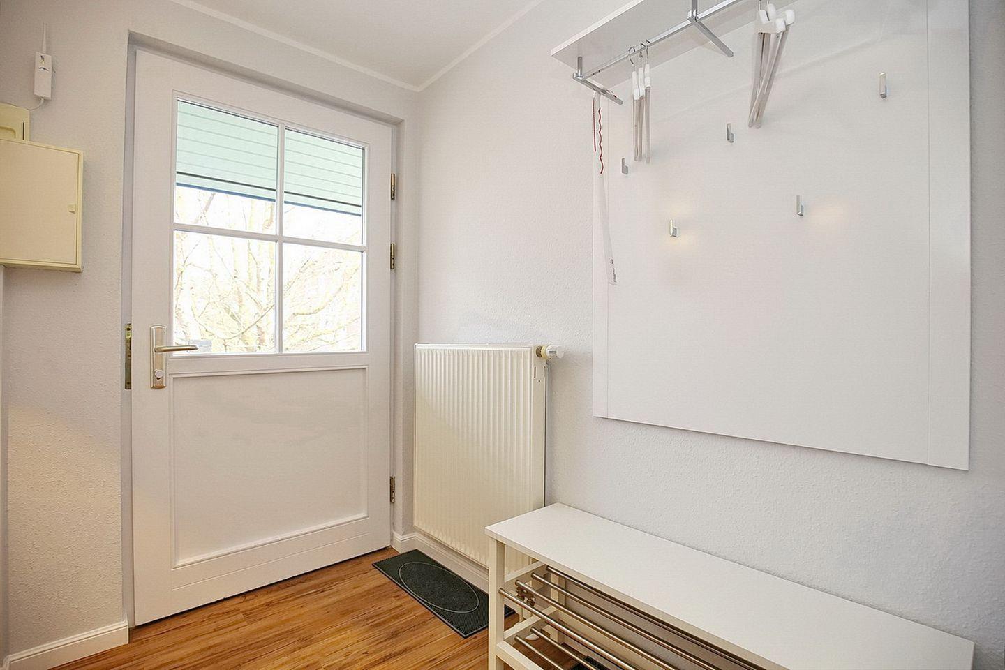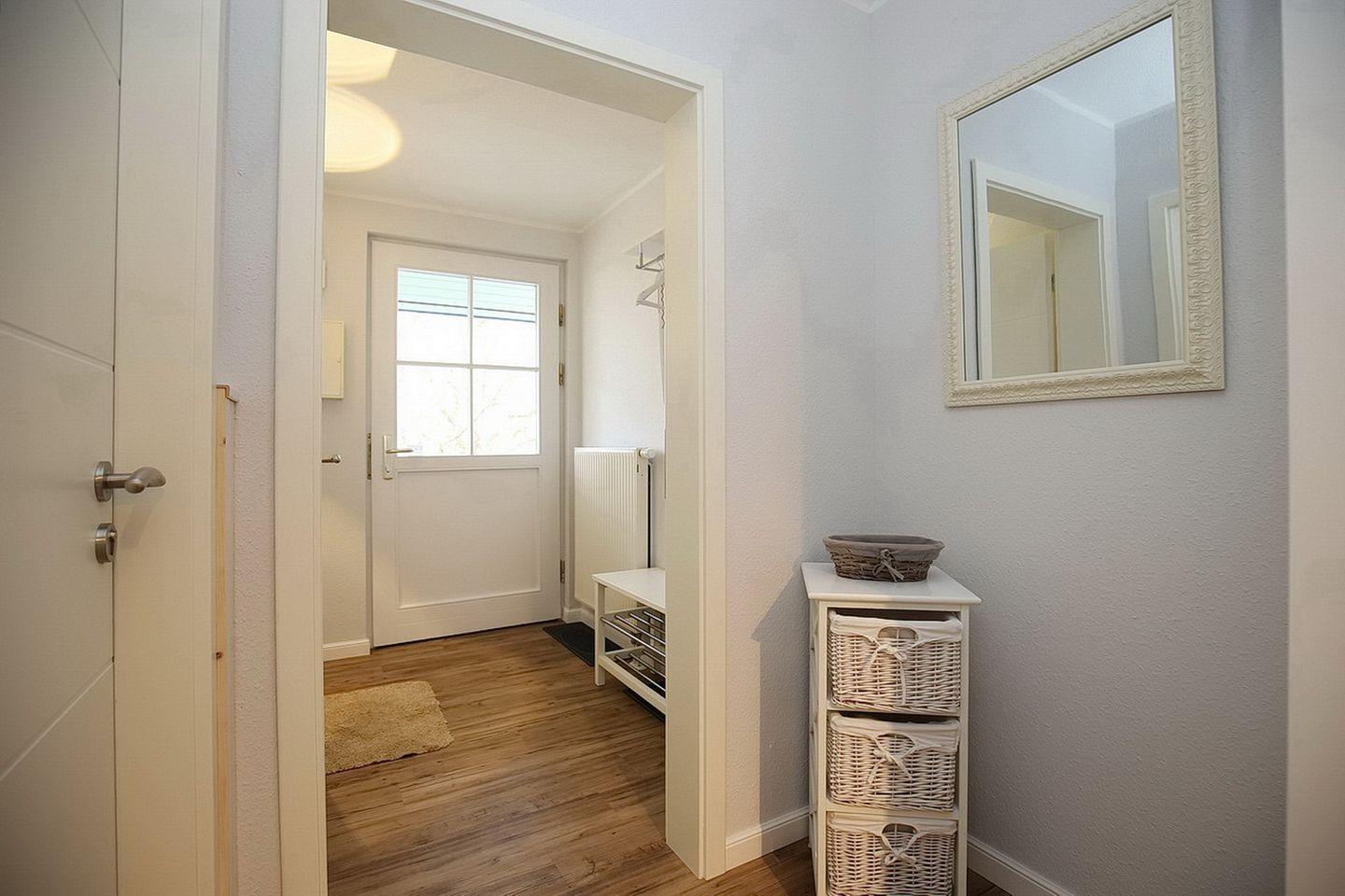 Zum Duschbad gehören zwei Waschbecken und ein separates WC. Für die Kleinsten steht ein Kinderstuhl bereit. Fahrräder können im Fahrradständer am Haus abgestellt werden. In dieser Nichtraucherwohnung sind maximal zwei Haustiere erlaubt.