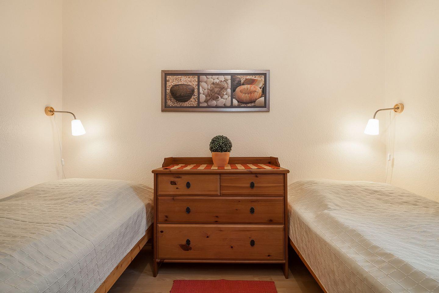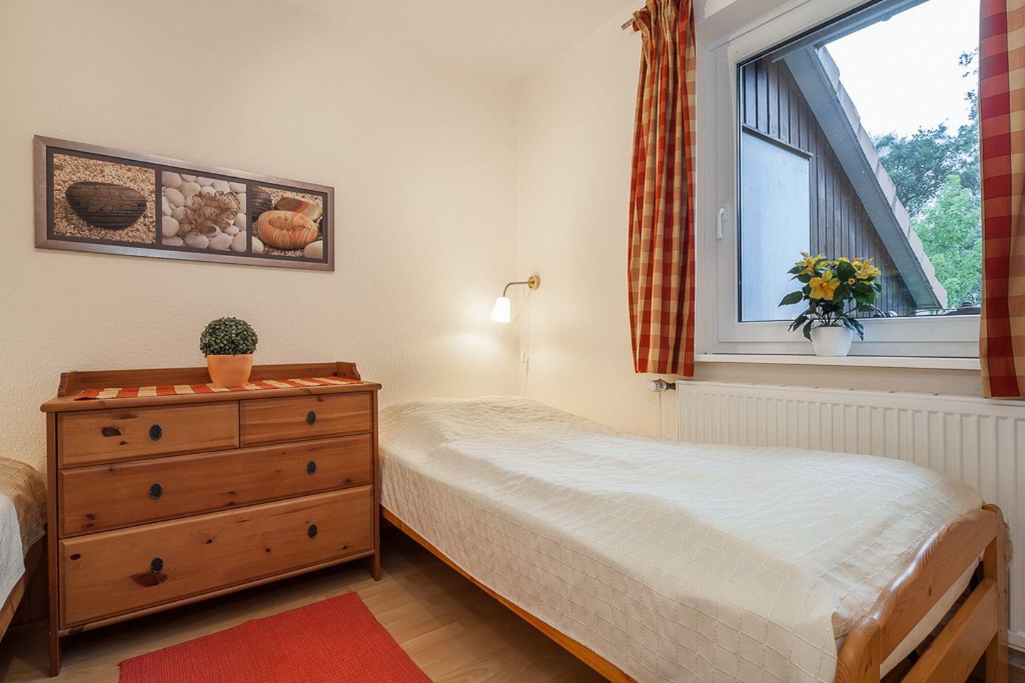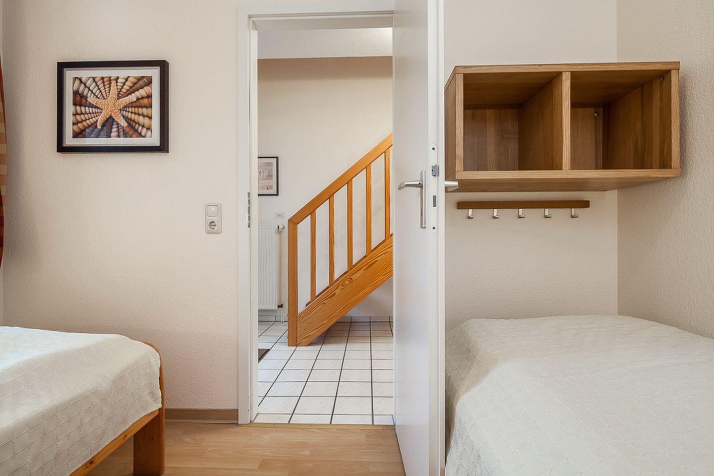 In den Schlafzimmern erwarten dich entweder zwei Einzelbetten (90 x 200 cm) oder ein großes Doppelbett (2 x 90 x 200 cm) mit verstellbaren Lattenrosten. Ein geräumiger Kleiderschrank und zwei Kommoden bieten reichlich Platz für deine Urlaubsgarderobe. Ein Kinderhochstuhl ist vorhanden.