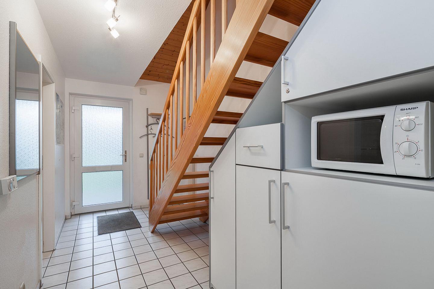 Die komfortable Küchenzeile mit 4-Platten-Cerankochfeld, Backofen, Spülmaschine und Kühlschrank mit Gefrierfach ist im Wohn/Essbereich im Erdgeschoss integriert. Kaffeemaschine, Wasserkocher, Mixer, Toaster und reichlich Geschirr stehen zur Verfügung.