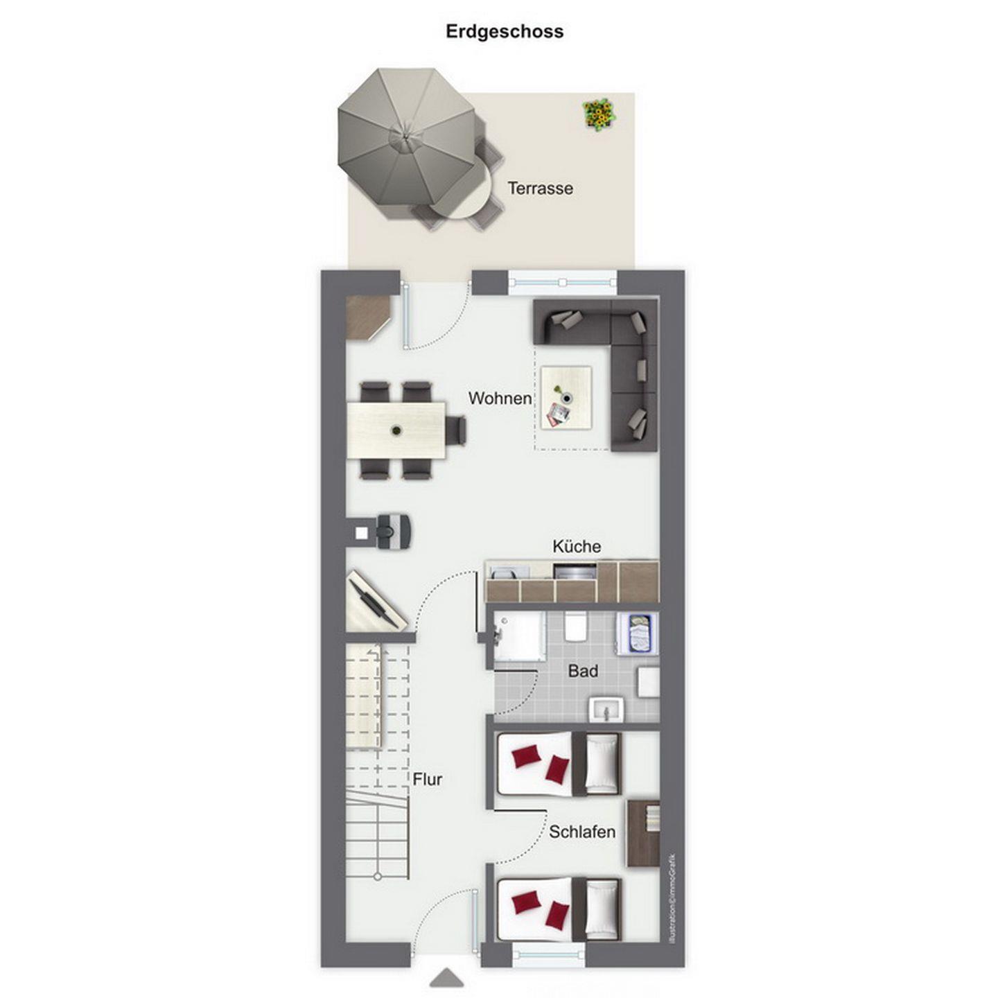 Das moderne und attraktiv eingerichtete Ferienhaus Nr. 62 b lädt auf ca. 54 m² zum Entspannen ein. Es verfügt über ein Wohnzimmer mit Küchenzeile, 2 Schlafzimmer, 1 Duschbad, 1 Gäste-WC sowie eine Süd-/West-Terrasse.