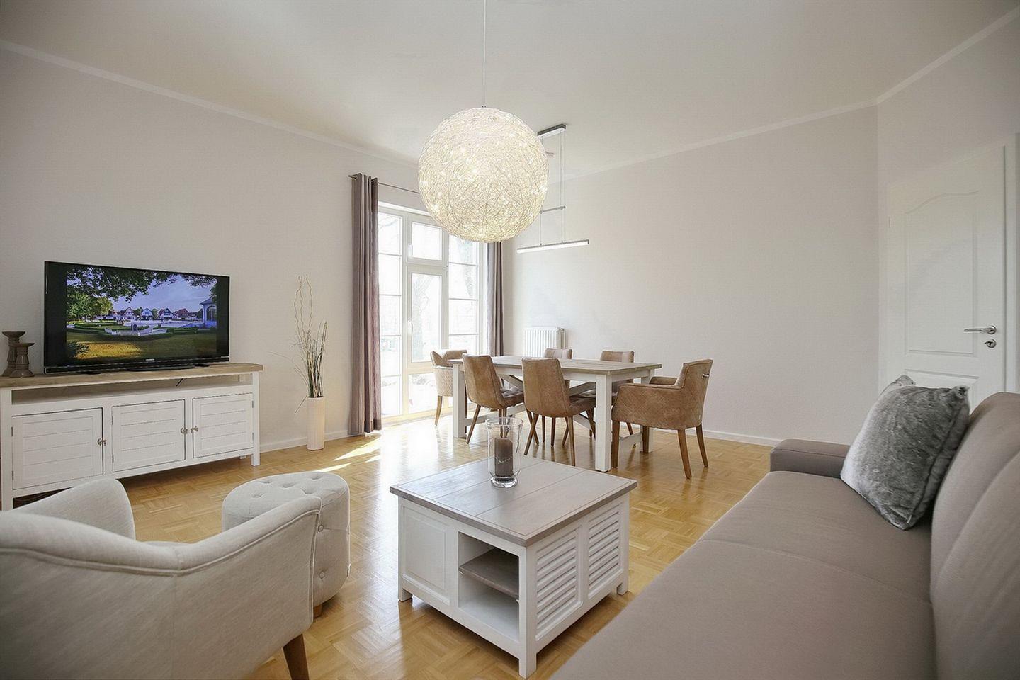 Die Ferienwohnung 1 in der Anlage Likedeeler Strandhaus ist eine 3-Zimmerwohnung für bis zu 6 Personen.