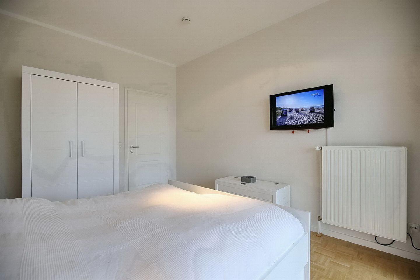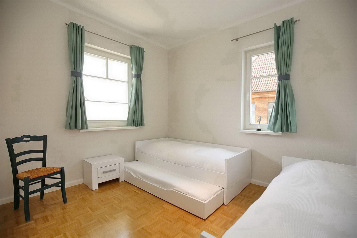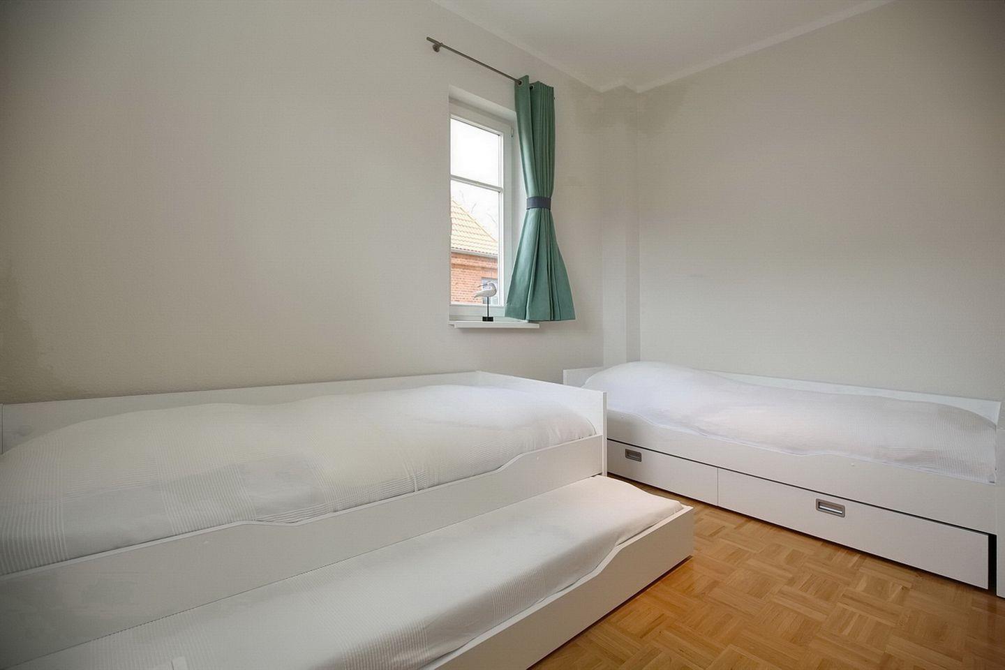 Genieße in den beiden Schlafzimmern die nächtliche Ruhe. In einem der Schlafzimmer befindet sich ein Doppelbett (2 x 90 x 200 cm). Ein geräumiger Kleiderschrank bietet viel Platz für deine Urlaubsgarderobe. Das zweite Schlafzimmer ist mit zwei Einzelbetten (90 x 200 cm) ausgestattet. In einem der Betten ist eine Bettschublade für die 5. Person vorhanden.