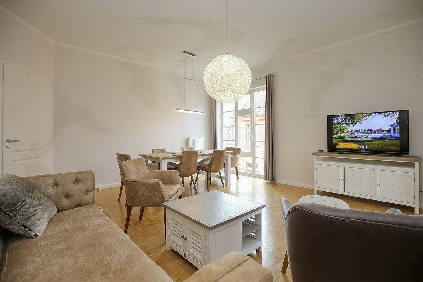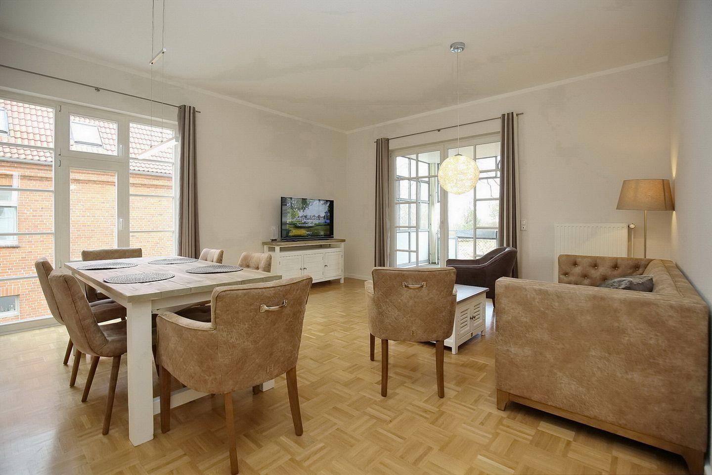 Die Ferienwohnung 2 in der Anlage Likedeeler Strandhaus im 1. Obergeschoss bietet Platz für 5 Personen.