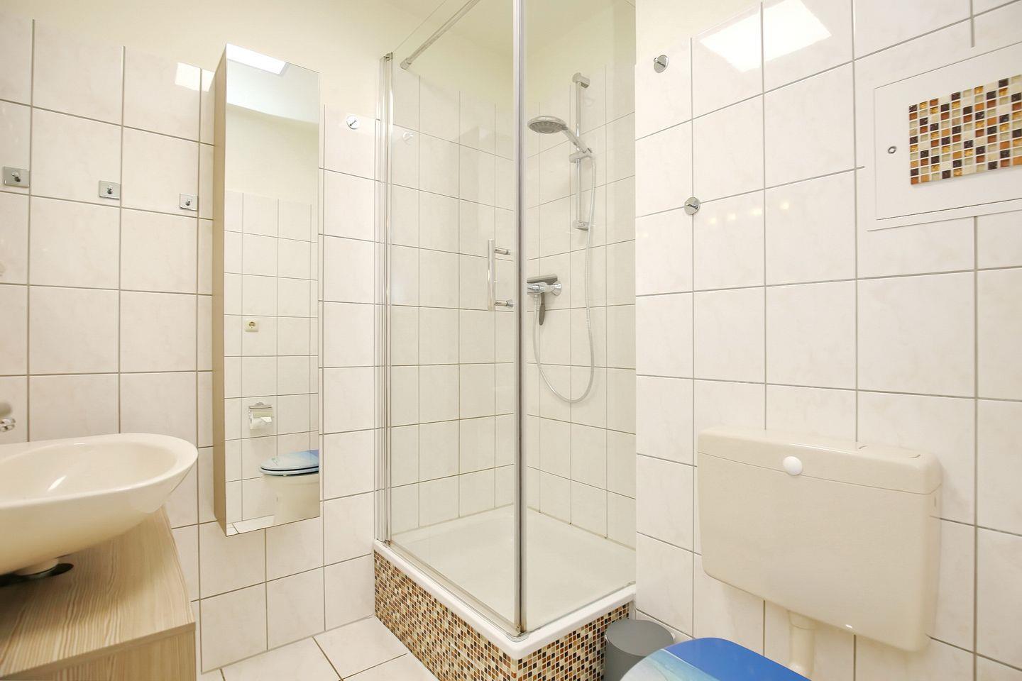 Ein Duschbad ist ebenfalls vorhanden. In dieser Nichtraucherwohnung sind Haustiere nicht erlaubt.