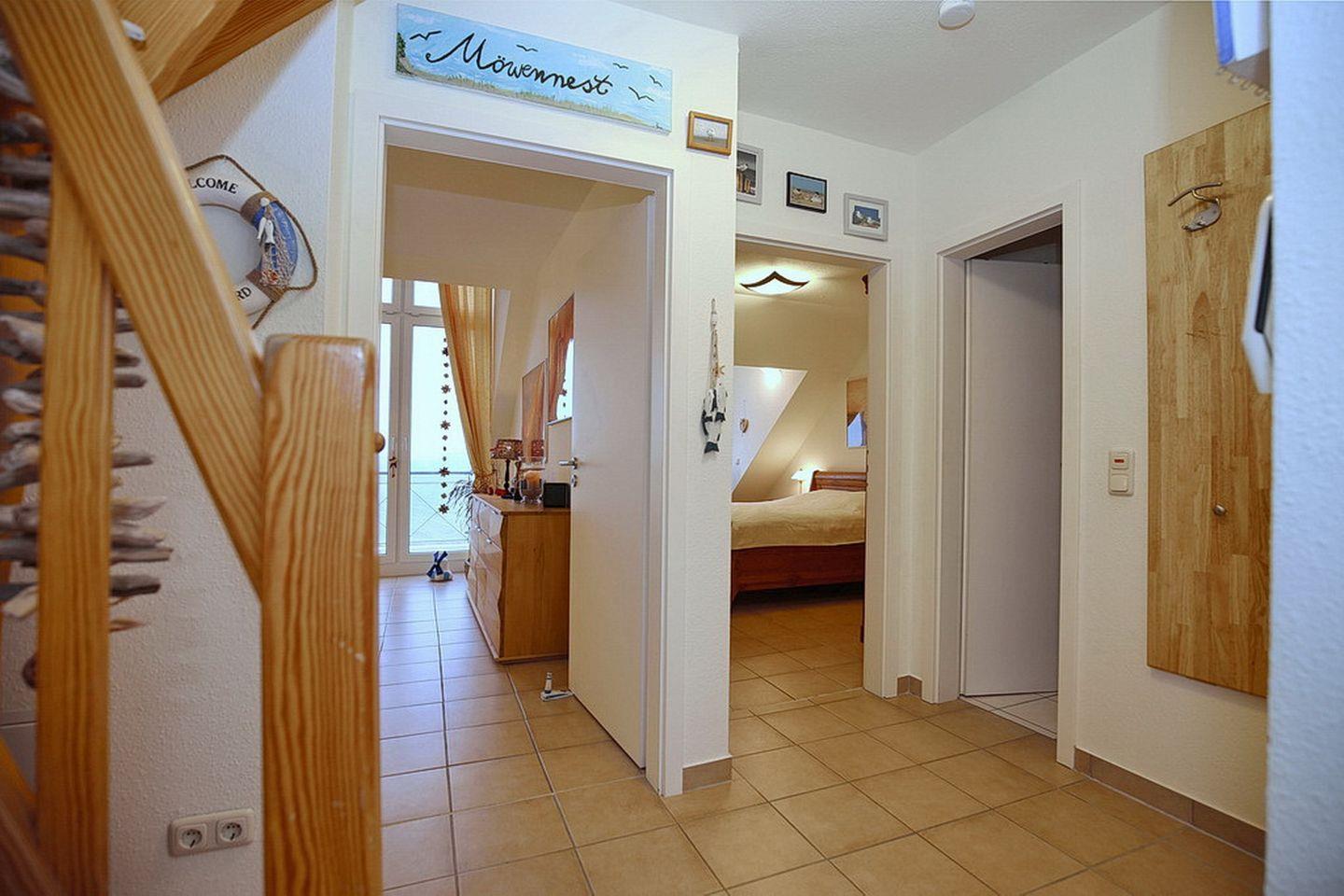 Mit einer Größe von ca. 65 m² kannst du in diesem 3-Zi-Appartment deinen Urlaub genießen. Die Wohnung „Möwennest“ mit Balkon in Süd-Lage findest du im 2. OG. Dich erwartet ein Wohn- und Essbereich, eine separate Küche, zwei Schlafzimmer und ein Duschbad. Die Entfernung zum Strand von der Ferienanlage Sünnslag beträgt ca. 400 m.