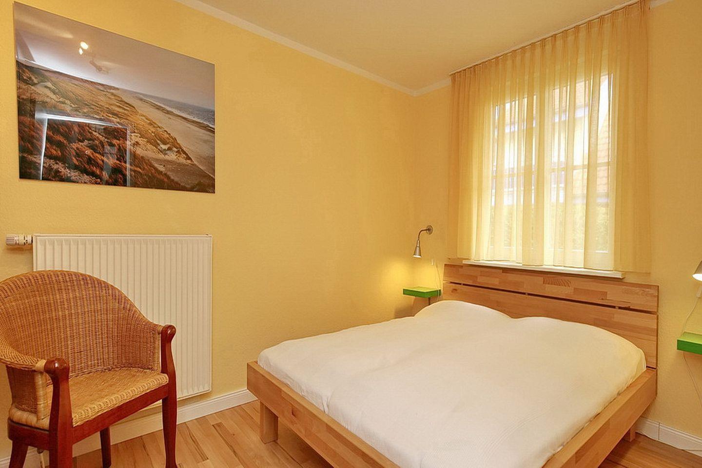 Im separaten Schlafzimmer findest du ein bequemes Doppelbett (2 x 80 x 200 cm) und einen dreitürigen Kleiderschrank für deine Urlaubsgarderobe. Weiteren Stauraum bietet ein Kleiderschrank im Eingangsbereich. An allen Fenstern der Wohnung sind Außenjalousien zur Abdunkelung sowie Fliegengitter angebracht.