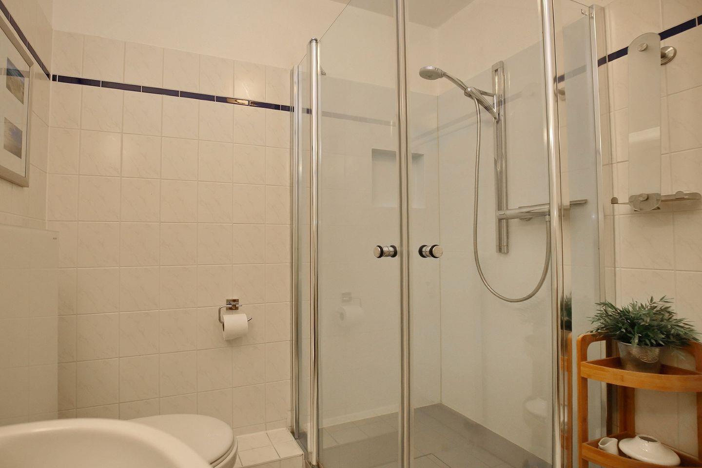 In der Küche findest du alles, was du zum Zubereiten von den Mahlzeiten benötigst: Herd mit einem 4-Platten-Cerankochfeld und Backofen, Geschirrspüler, Mikrowelle, Kaffeemaschine, Wasserkocher, Toaster, ausreichend Geschirr etc. Selbstverständlich ist das geflieste Duschbad. Bei dieser Ferienwohnung handelt es sich um eine Nichtraucherwohnung, in der Haustiere nicht erlaubt sind.
