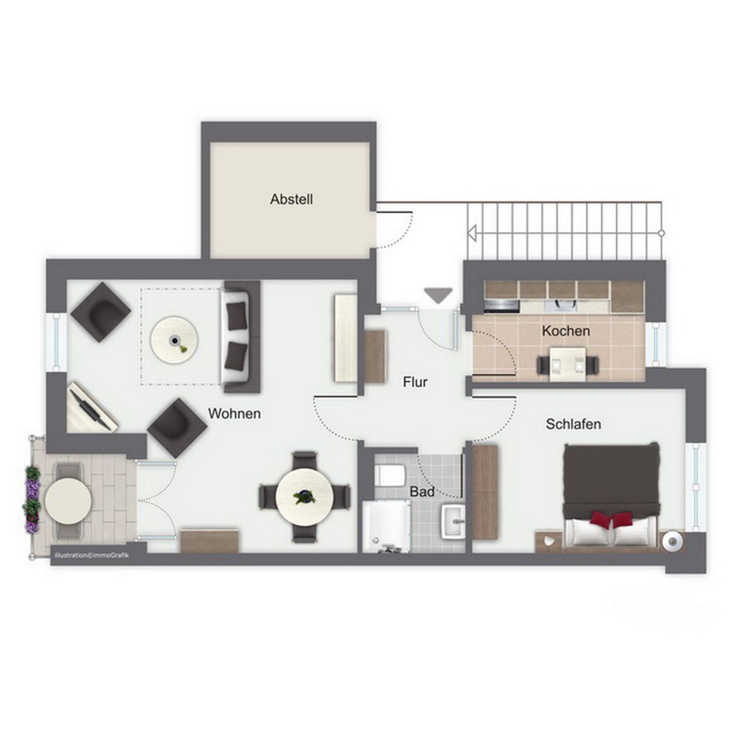 Das helle und freundliche 2-Zimmer-Apartment Nr. 58 ist über eine separate Außentreppe zu erreichen. Die Wohnung teilt sich auf in Küche, Schlafzimmer, Badezimmer und Wohnraum. Alle Räume sind vom Flur aus zu erreichen. WLAN (ohne Gewähr) inklusive.