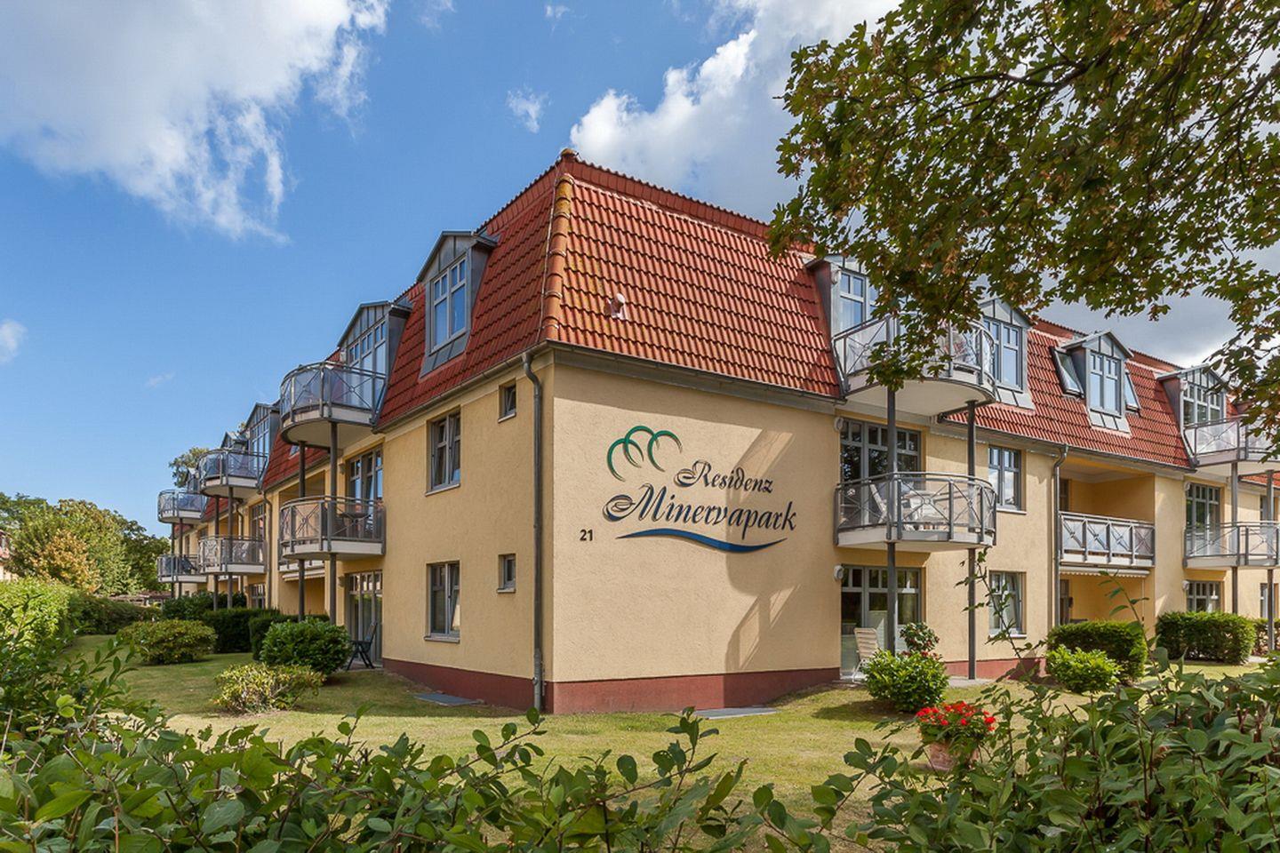 Die Ferienwohnung Nr. 25 in der Anlage Minervapark ist eine 1-Zimmer-Wohnung für bis zu 2 Personen.