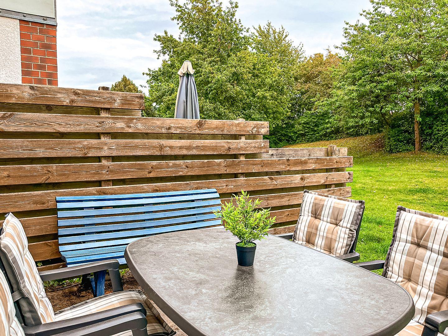 In unmittelbarer Nähe gehört ein PKW- Außenstellplatz zur Wohnung. Fahrräder können in einem Abstellraum abgestellt werden. Die Ferienanlage Sünnslag liegt eingebettet zwischen der Kastanienallee und begrünten ruhigen Seitenstraßen. Einkaufsmöglichkeiten sind nur ca. 200 m entfernt.