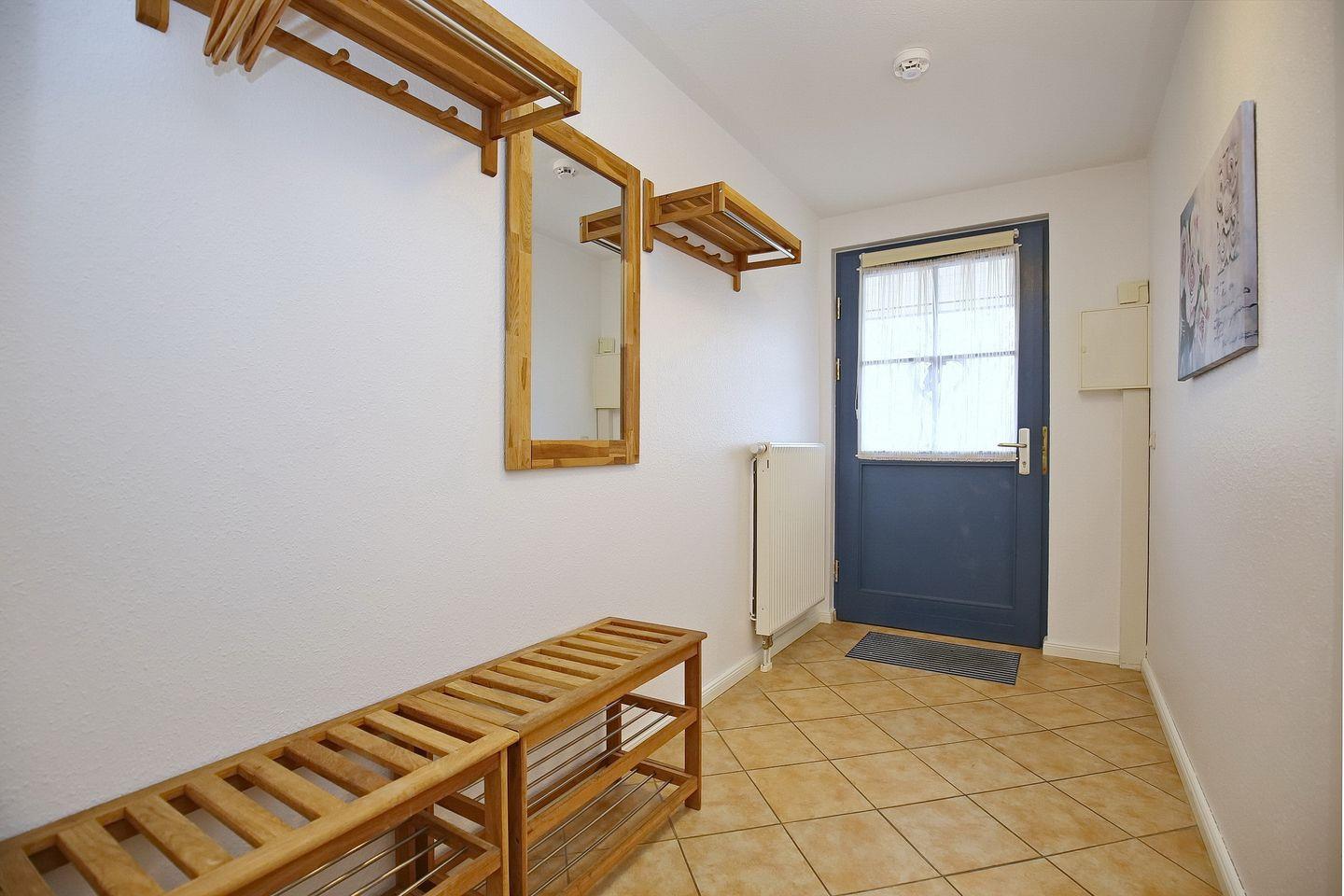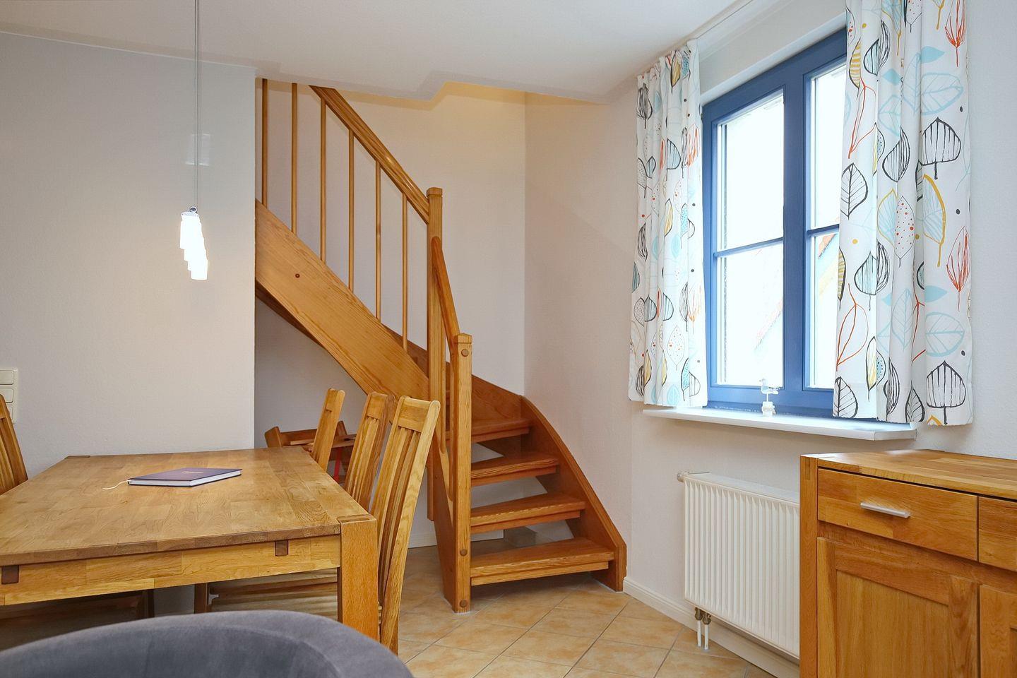 Diese freundlich eingerichtete 4-Zimmer-Ferienwohnung befindet sich im 1. OG am Ende des Hauses 5. In die ca. 70 m² große Wohnung mit einem Süd-West Balkon gelangst du über eine Außentreppe. Über zwei Etagen verteilen sich der Wohn-/Essbereich, drei Schlafzimmer, eine Küchenzeile und ein Duschbad mit einem separaten WC. Zum Strand sind es vom Feriendorf Papillon etwa 250 m.