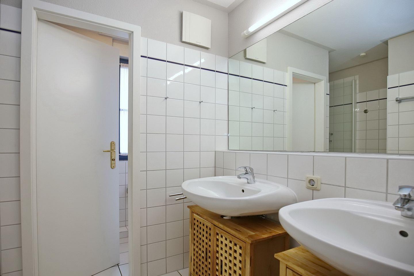 Das Bad ist mit zwei Waschtischen, einer Duschkabine sowie einem separaten WC mit Fenster ausgestattet. Fahrräder können im Fahrradständer am Haus abgestellt werden. In dieser Nichtraucherwohnung sind Haustiere nicht erlaubt.