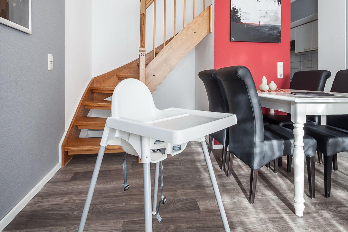 Für die kleinen Gäste stehen in dieser Ferienwohnung ein Hochstuhl und ein festaufgebautes Kinderbett mit Matratze (120 x 60cm) bereit. Kinderbettzeug und Laken bringst du bitte selbst mit.